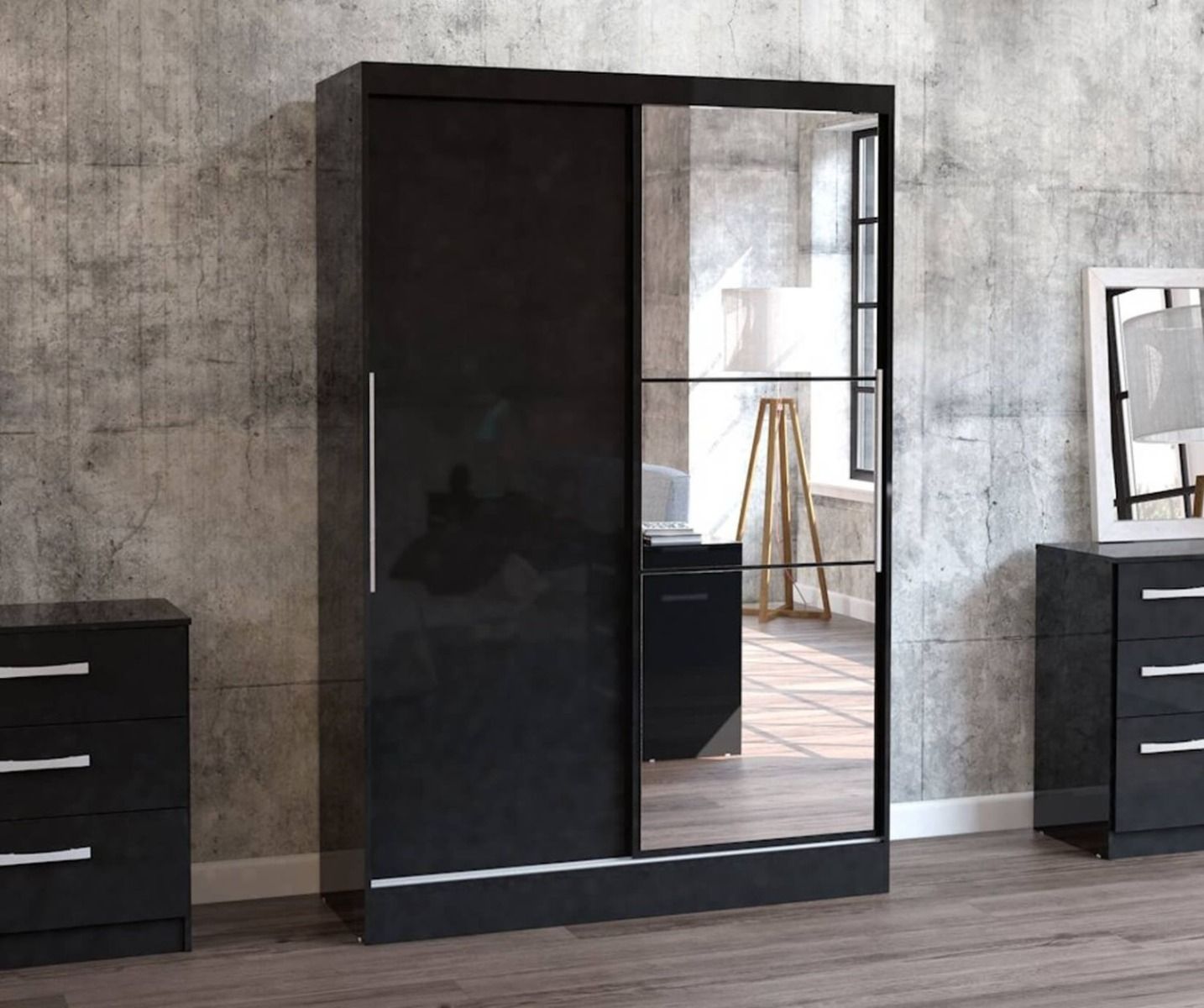 Sliding Wardrobe - LYTHAM 2 Door Mirrored Wardrobe Black 132cm