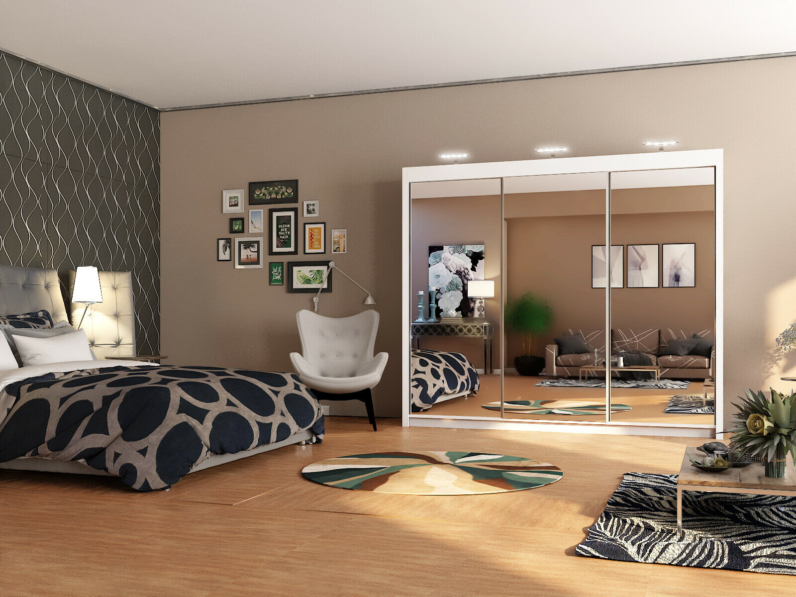 Sliding Wardrobe - MATHILDE 3 Door Mirrored Wardrobe White 250cm