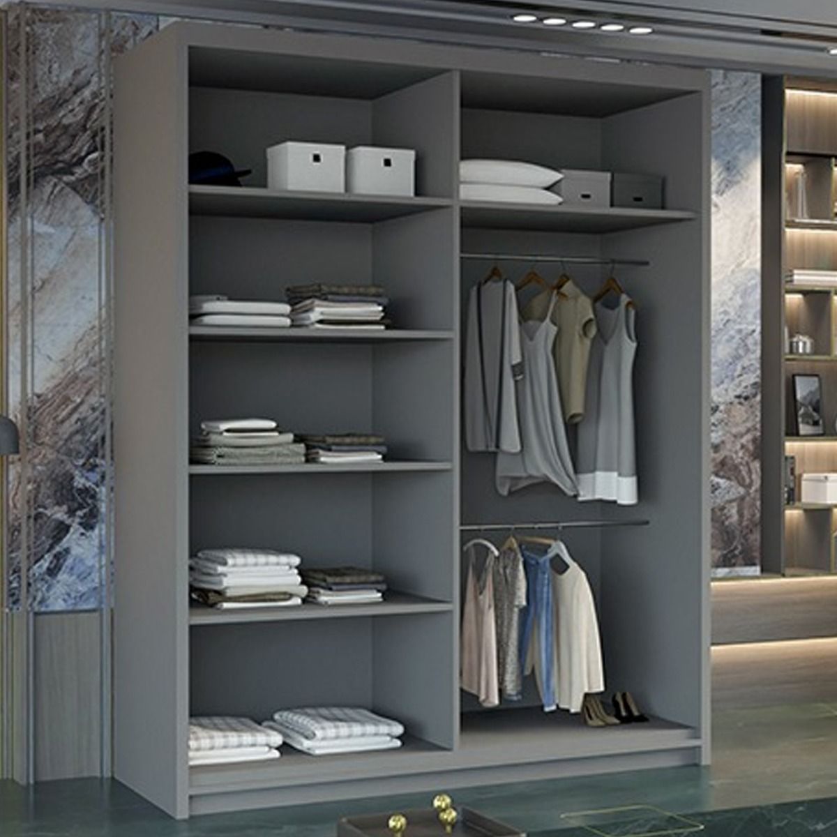 Sliding Wardrobe - MERICA 2 Door Mirrored Wardrobe Grey - 180cm