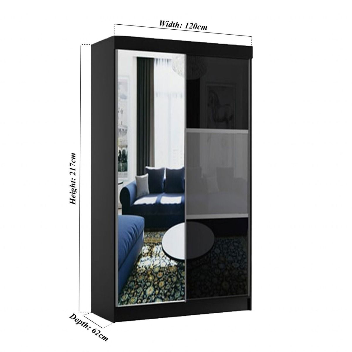 Sliding Wardrobe - MONCLER 2 Door Mirrored Wardrobe Black - 120cm