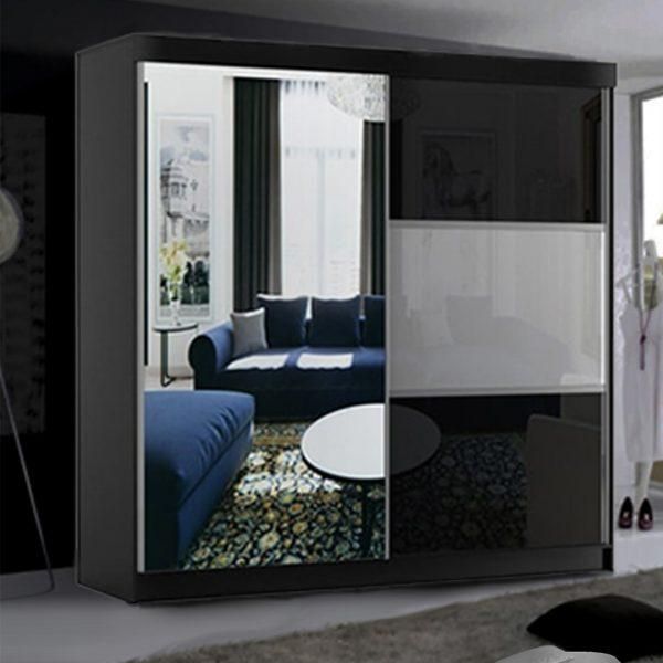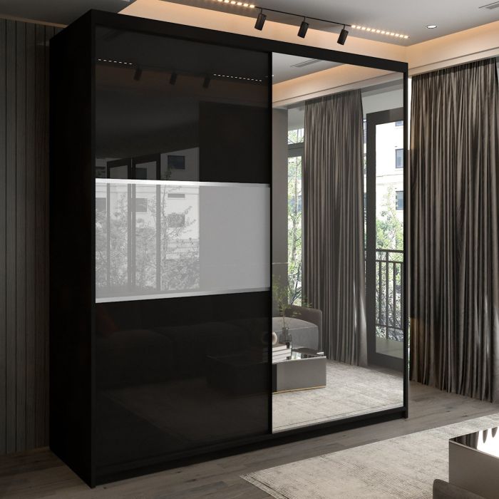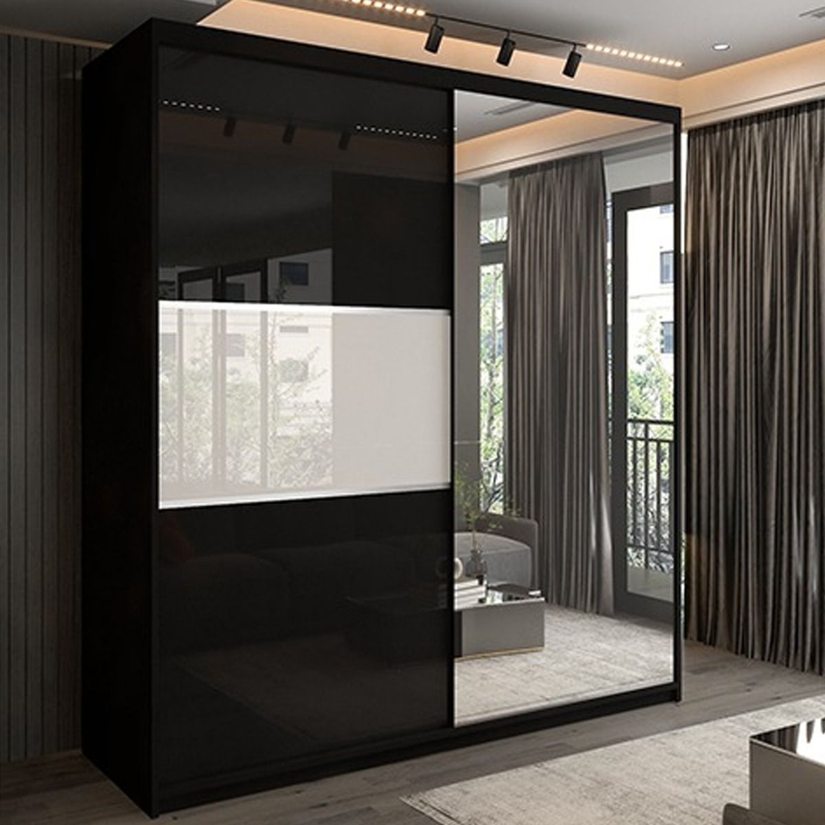 Sliding Wardrobe - MONCLER 2 Door Mirrored Wardrobe Black - 200cm