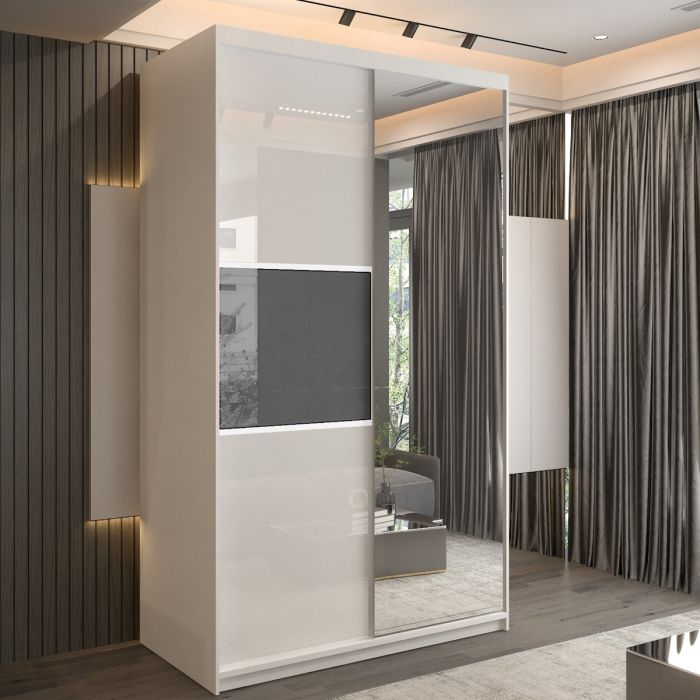 Sliding Wardrobe - MONCLER 2 Door Mirrored Wardrobe White - 120cm