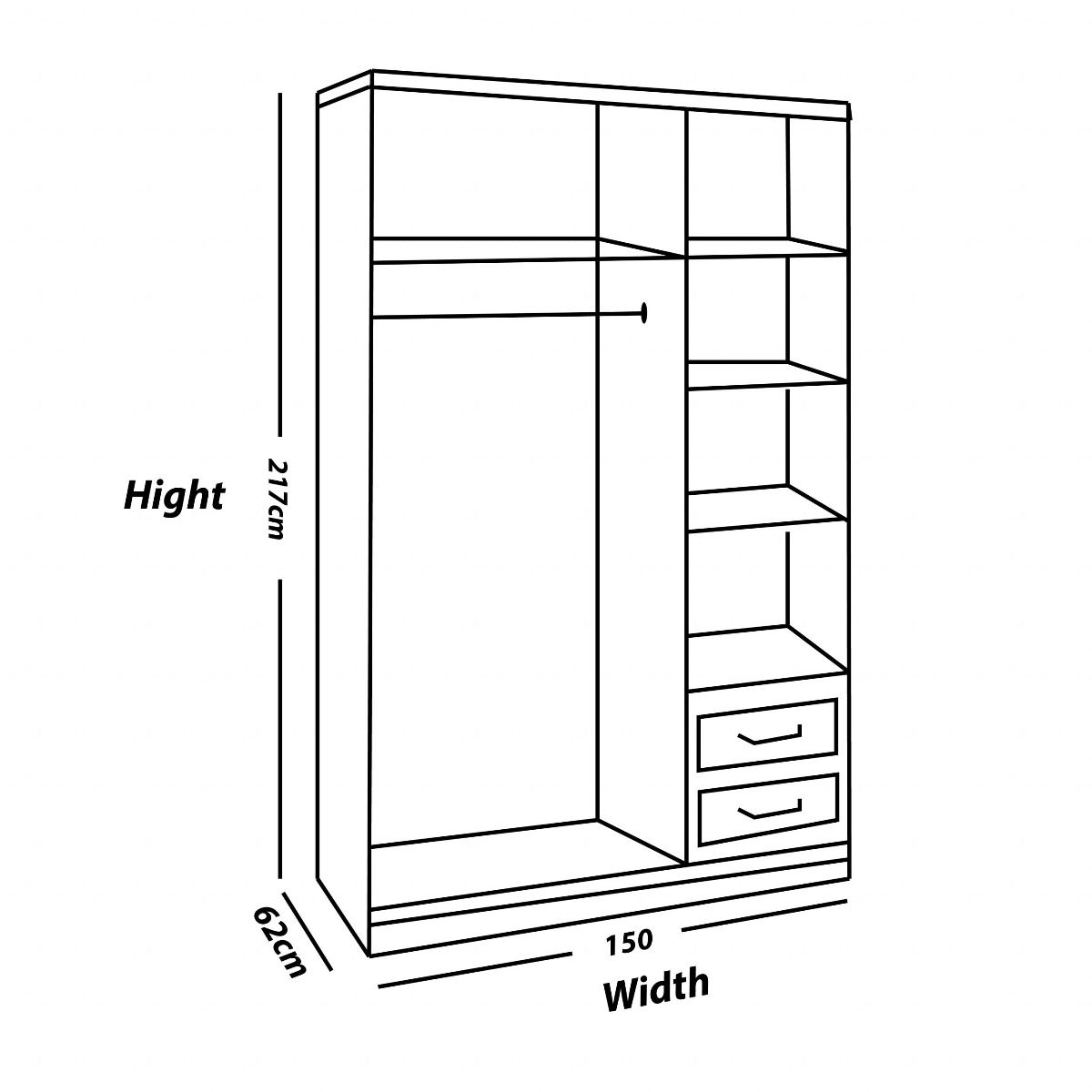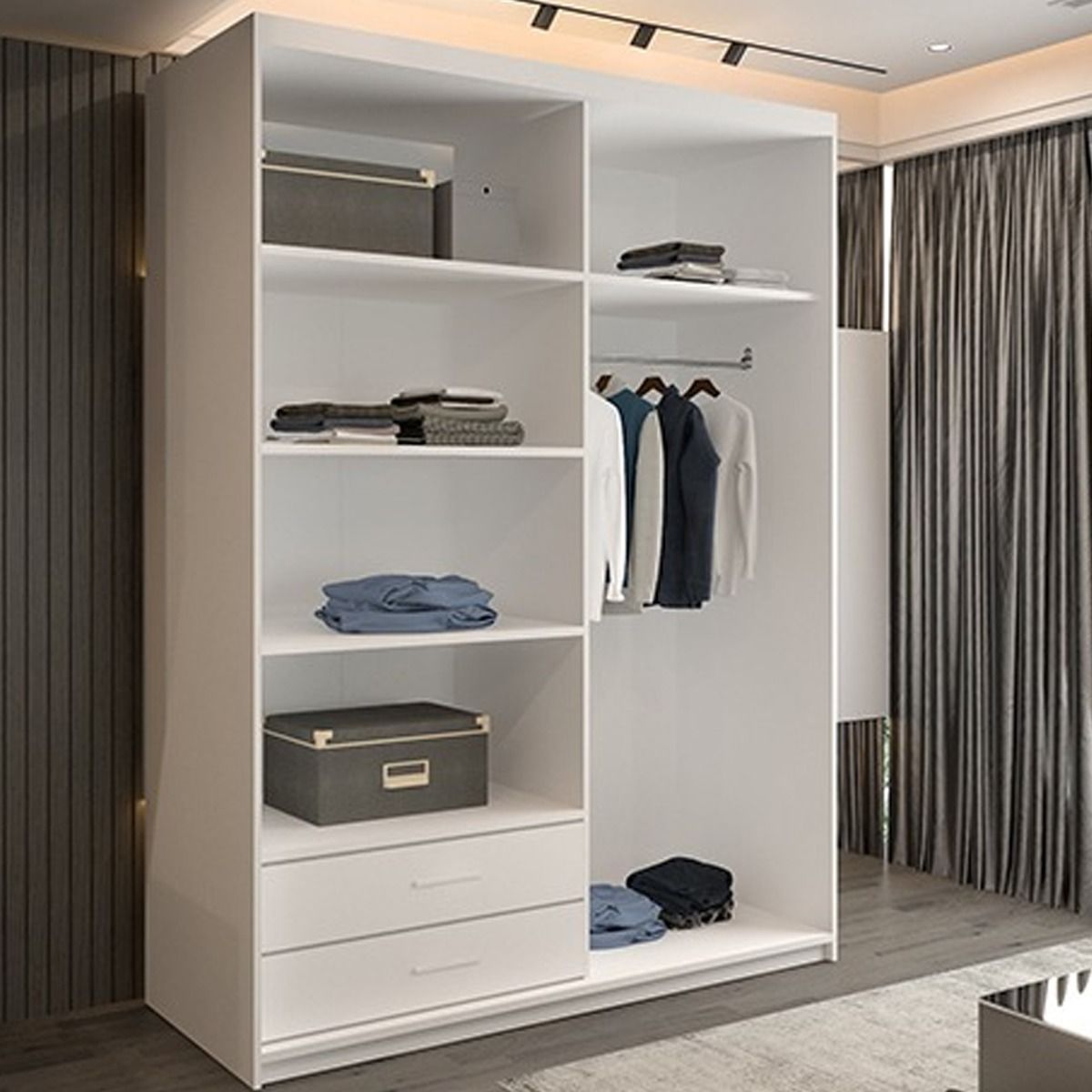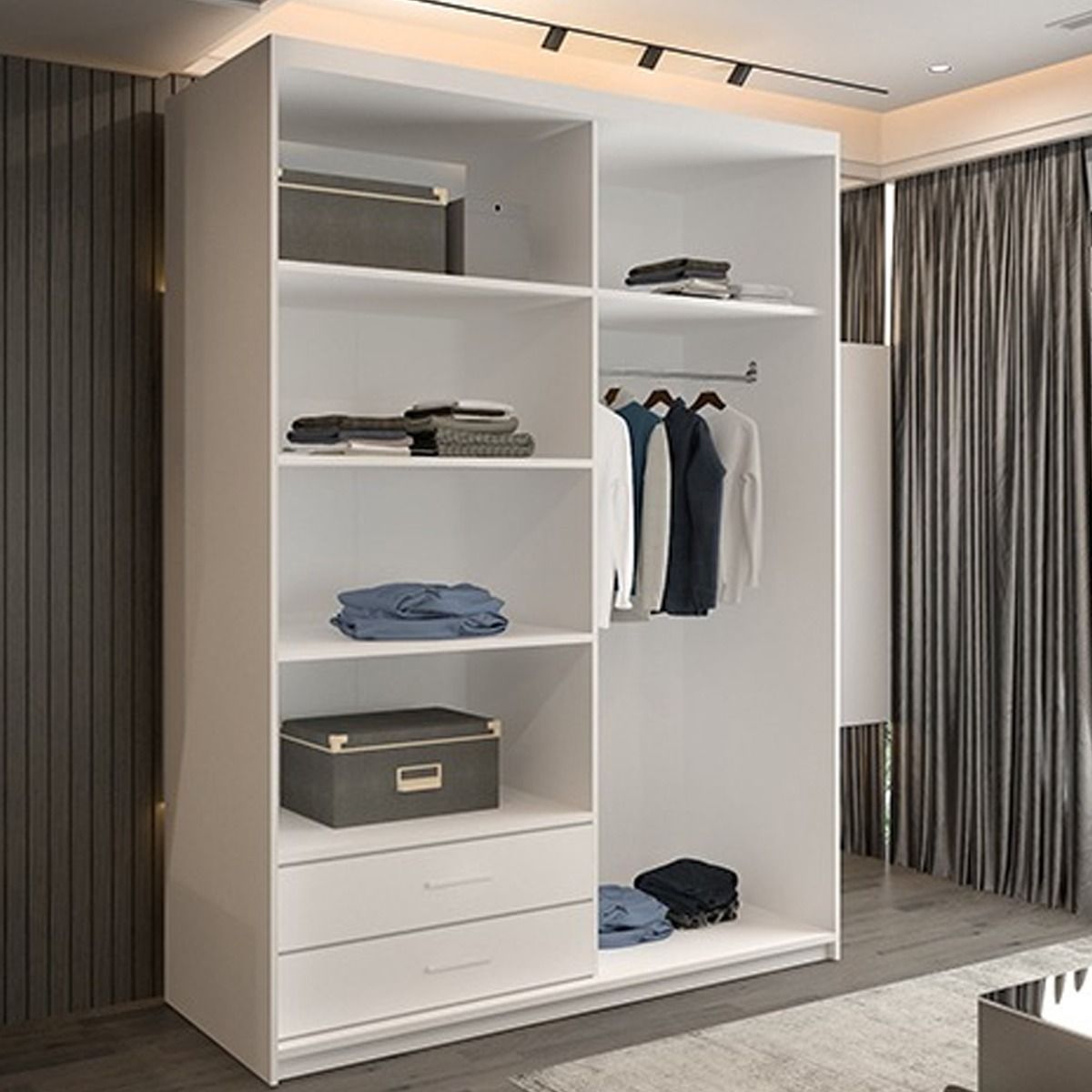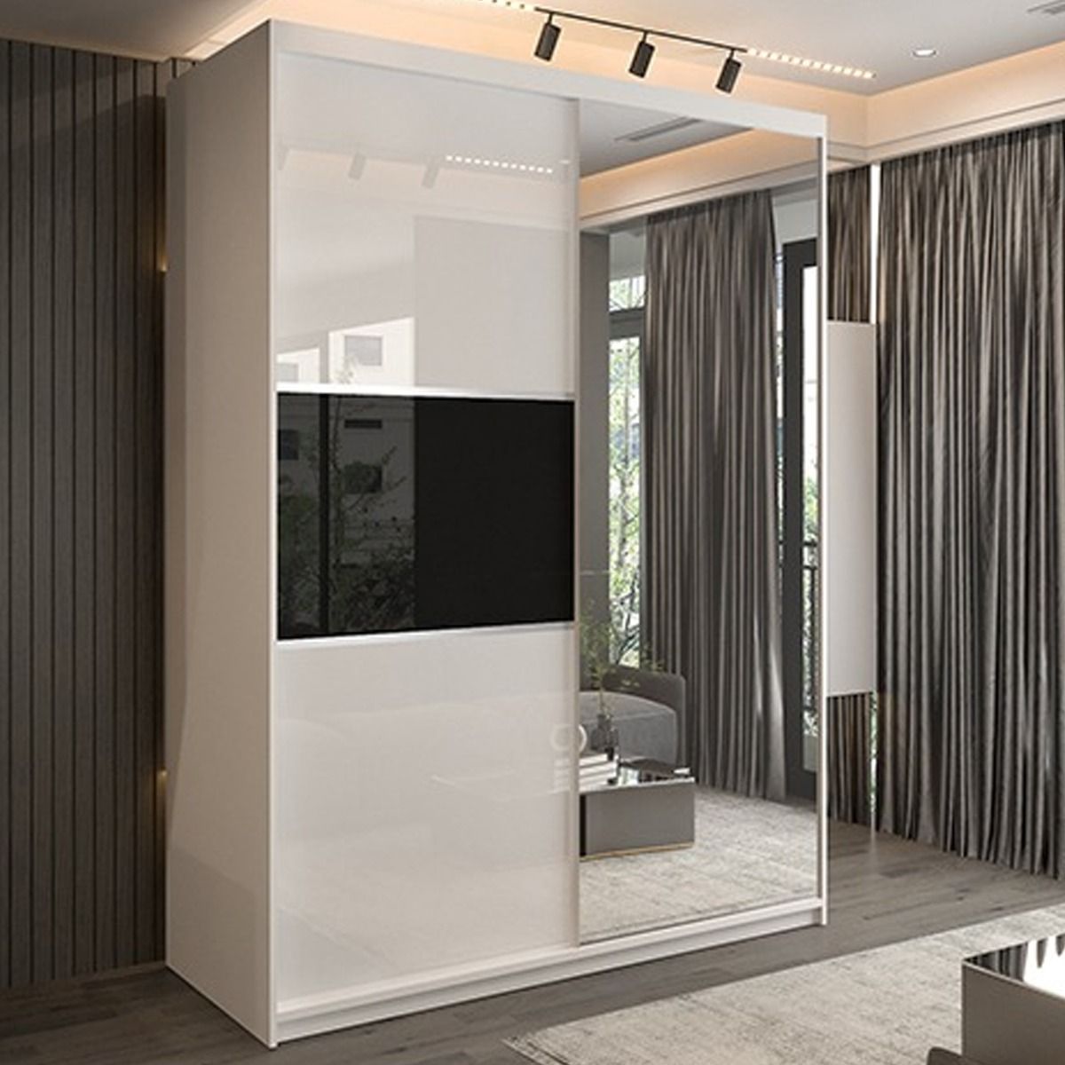 Sliding Wardrobe - MONCLER 2 Door Mirrored Wardrobe White - 150cm