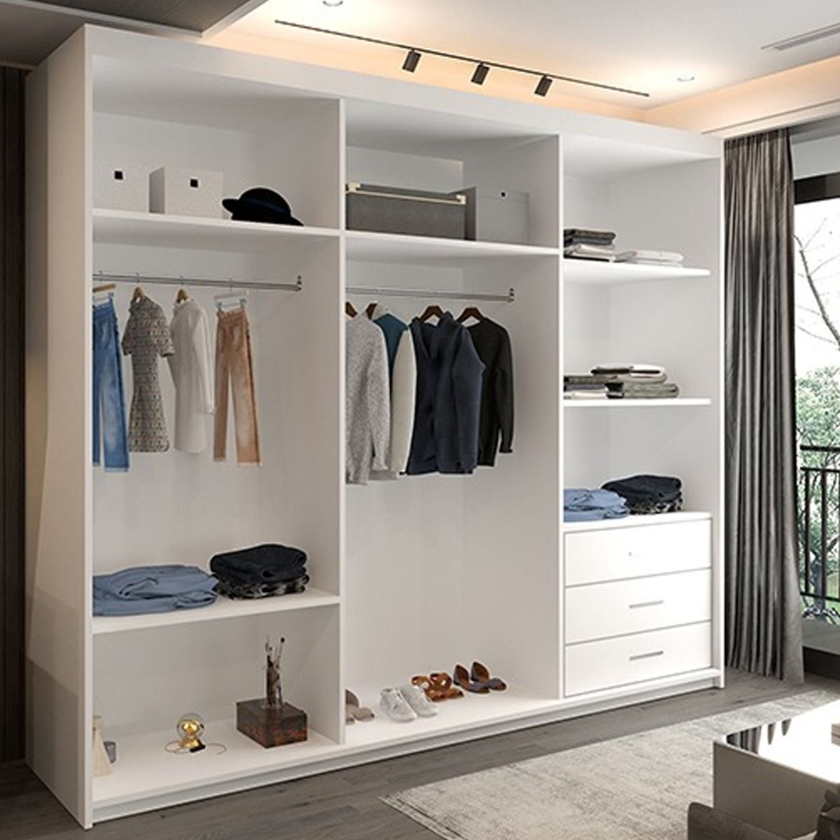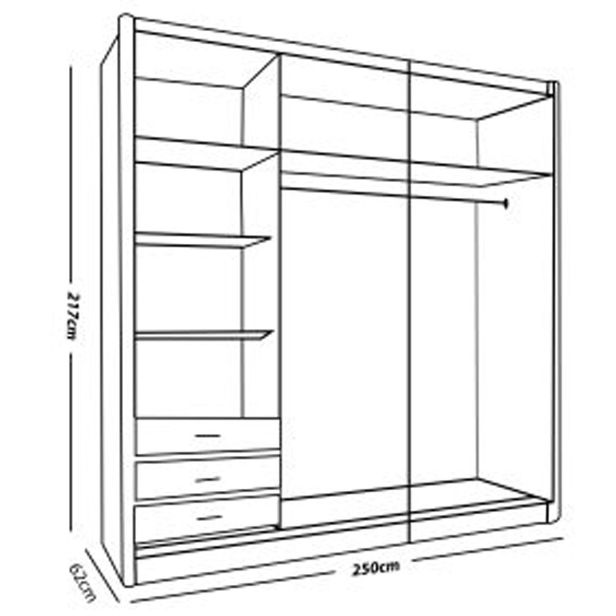 Sliding Wardrobe - MONCLER 3 Door Mirrored Wardrobe White - 250cm