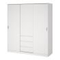 Sliding Wardrobe - NANAIMO 3 Doors 3 Drawers Wardrobe White 177cm