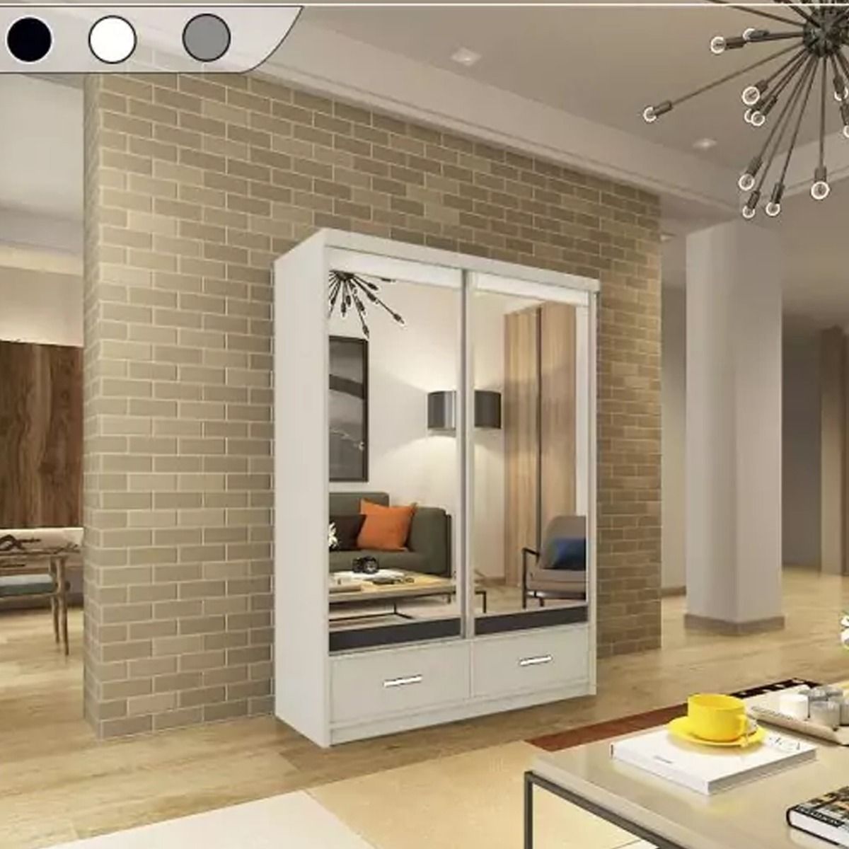 Sliding Wardrobe - NEWRY 2 Door Mirrored Wardrobe White - 150cm
