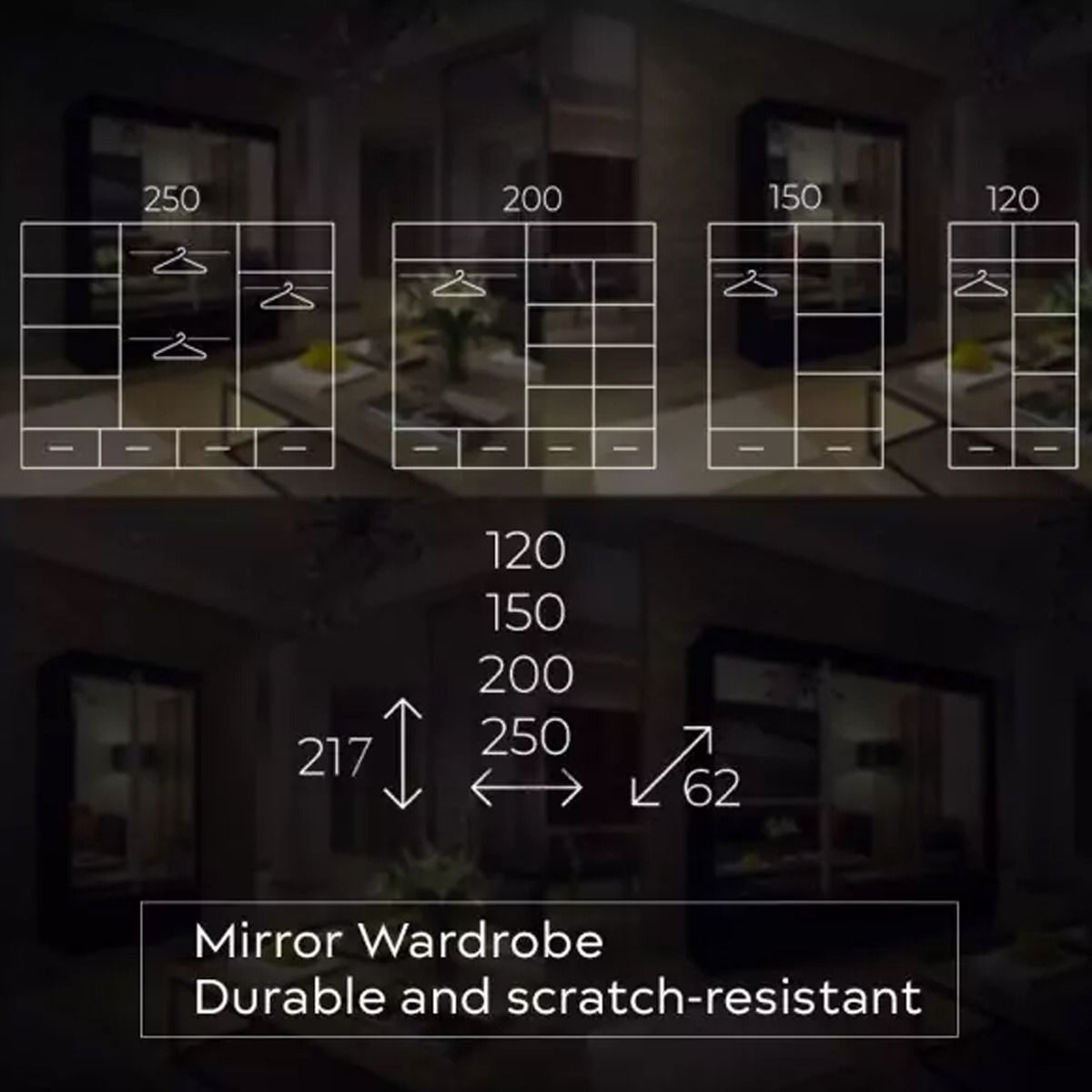 The NEWRY 250cm Mirrored Sliding Door Wardrobe comes with giving your bedroom a classy look! With both hanging space and shelf storage, you can store coats, suits, tops, T-shirts, and towels with room for shoes, bedding, and storage boxes.