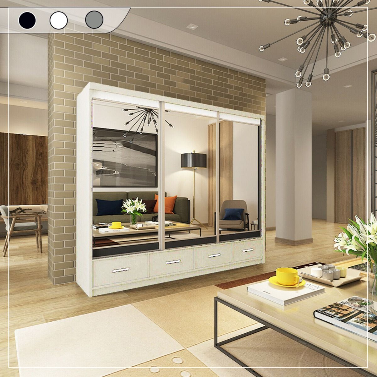 Sliding Wardrobe - NEWRY 3 Door Mirrored Wardrobe White 250cm