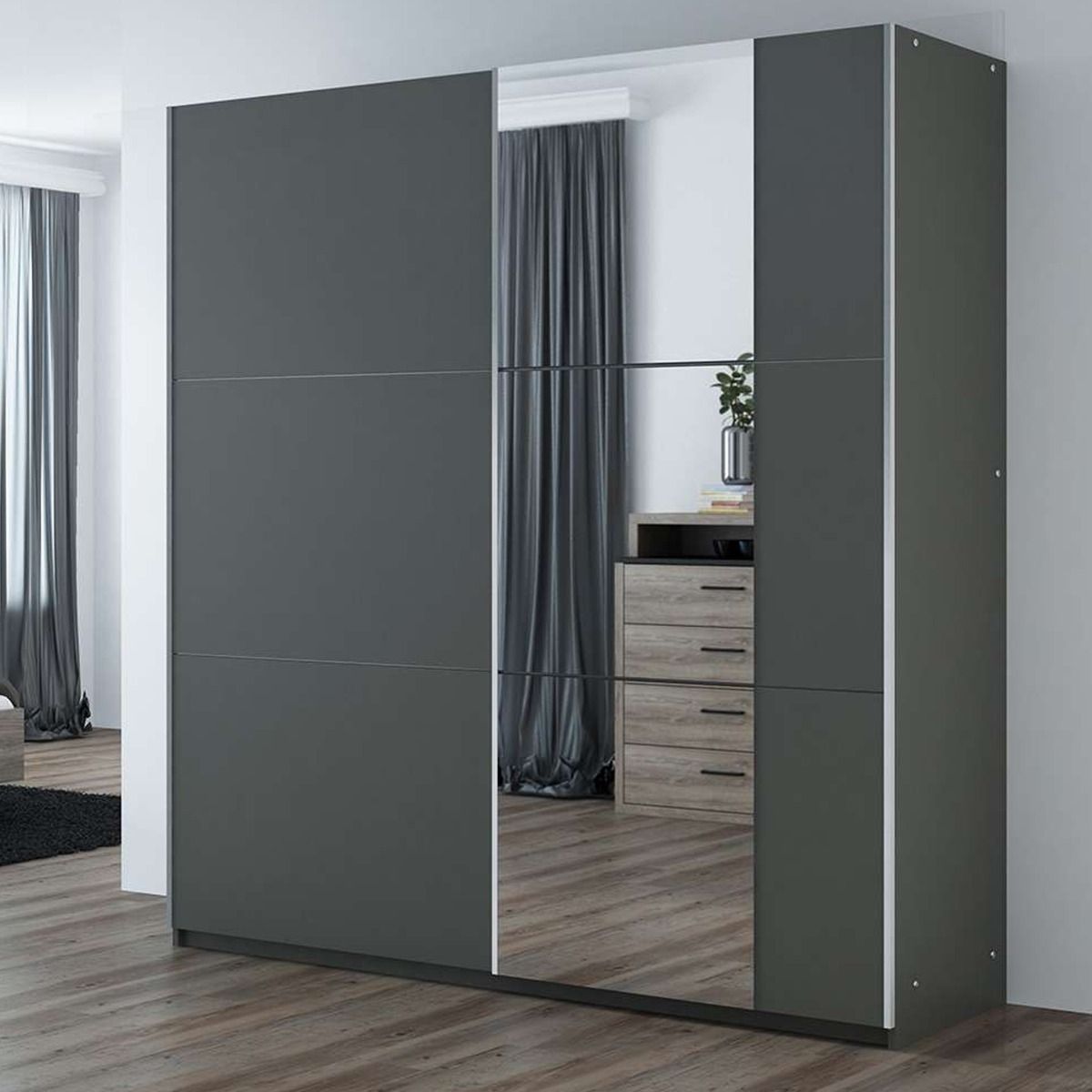 Sliding Wardrobe - OLDHAM 2 Door Mirrored Wardrobe Grey 200cm