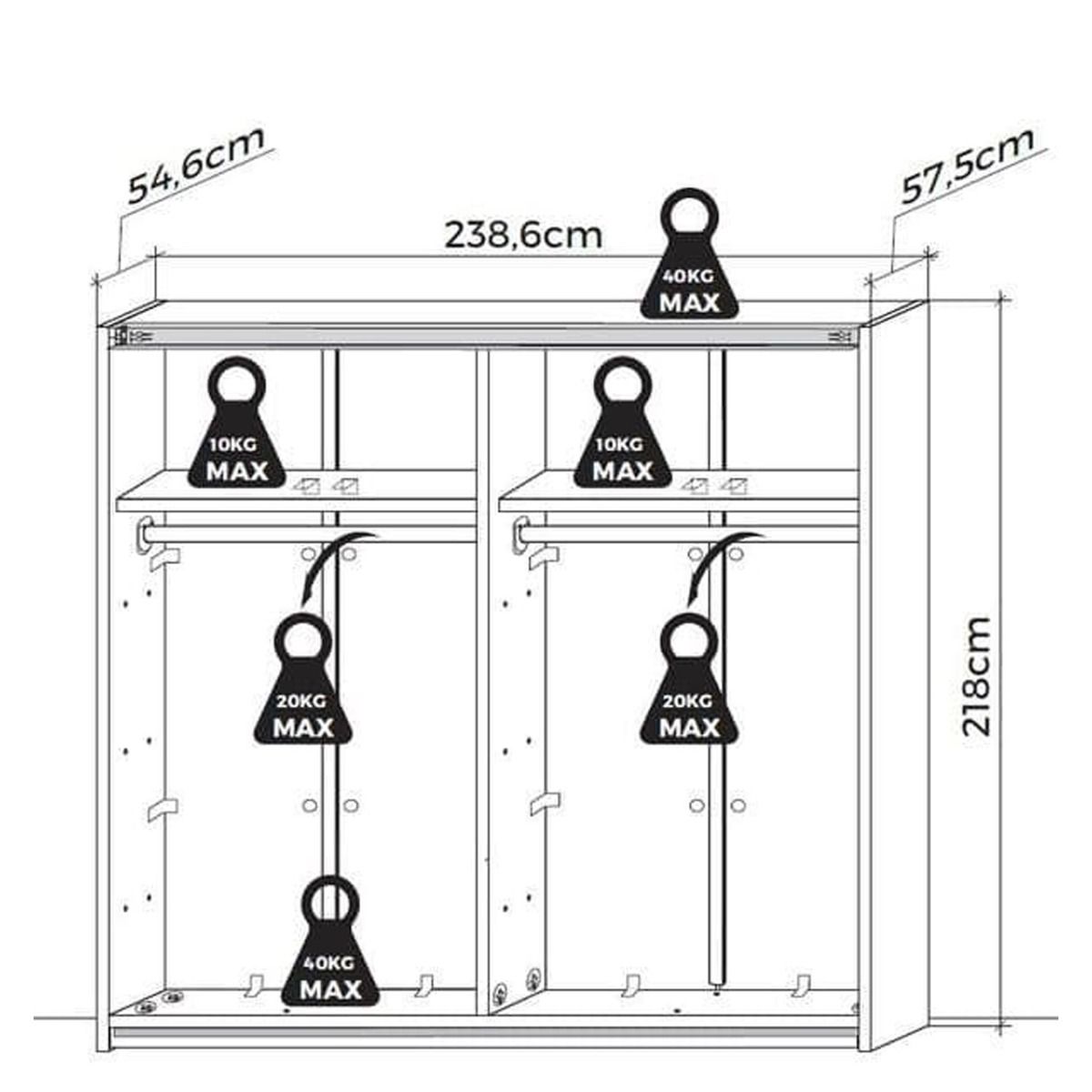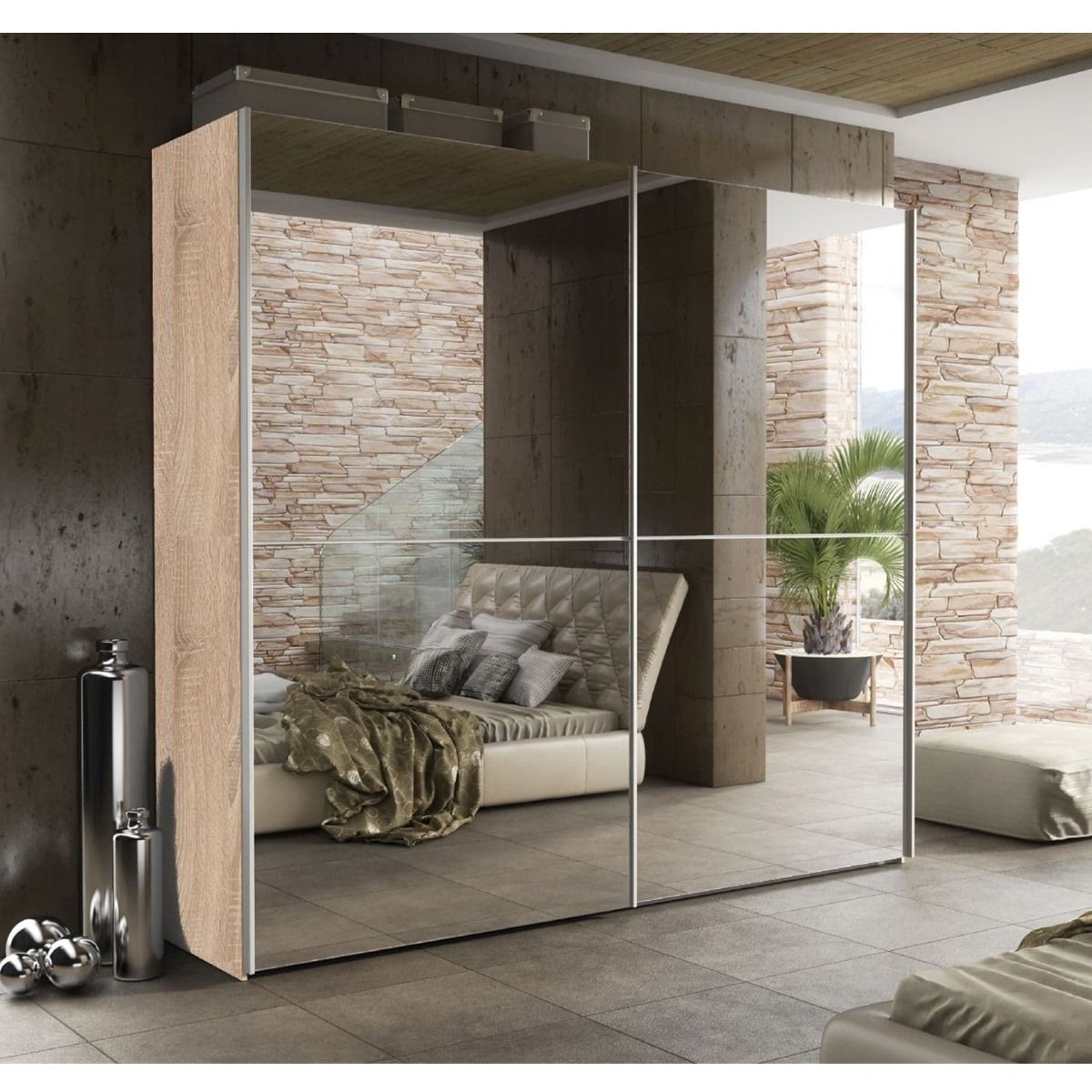 Sliding Wardrobe - SEATTLE 2 Door Full Mirrored Wardrobe Oak Effect 240cm