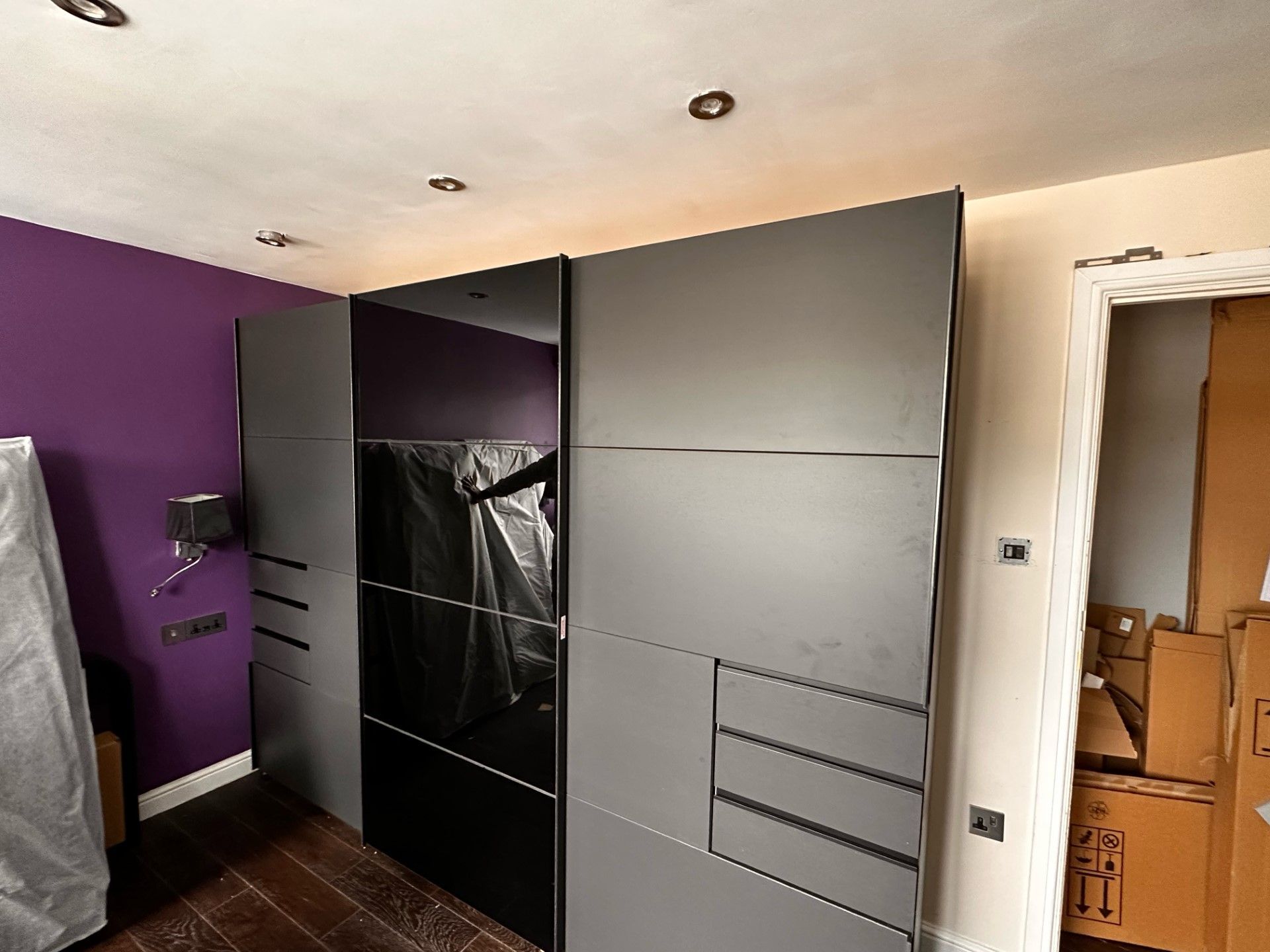 Sliding Wardrobe - SOGO 3 Door Mirrored Wardrobe Black 270cm