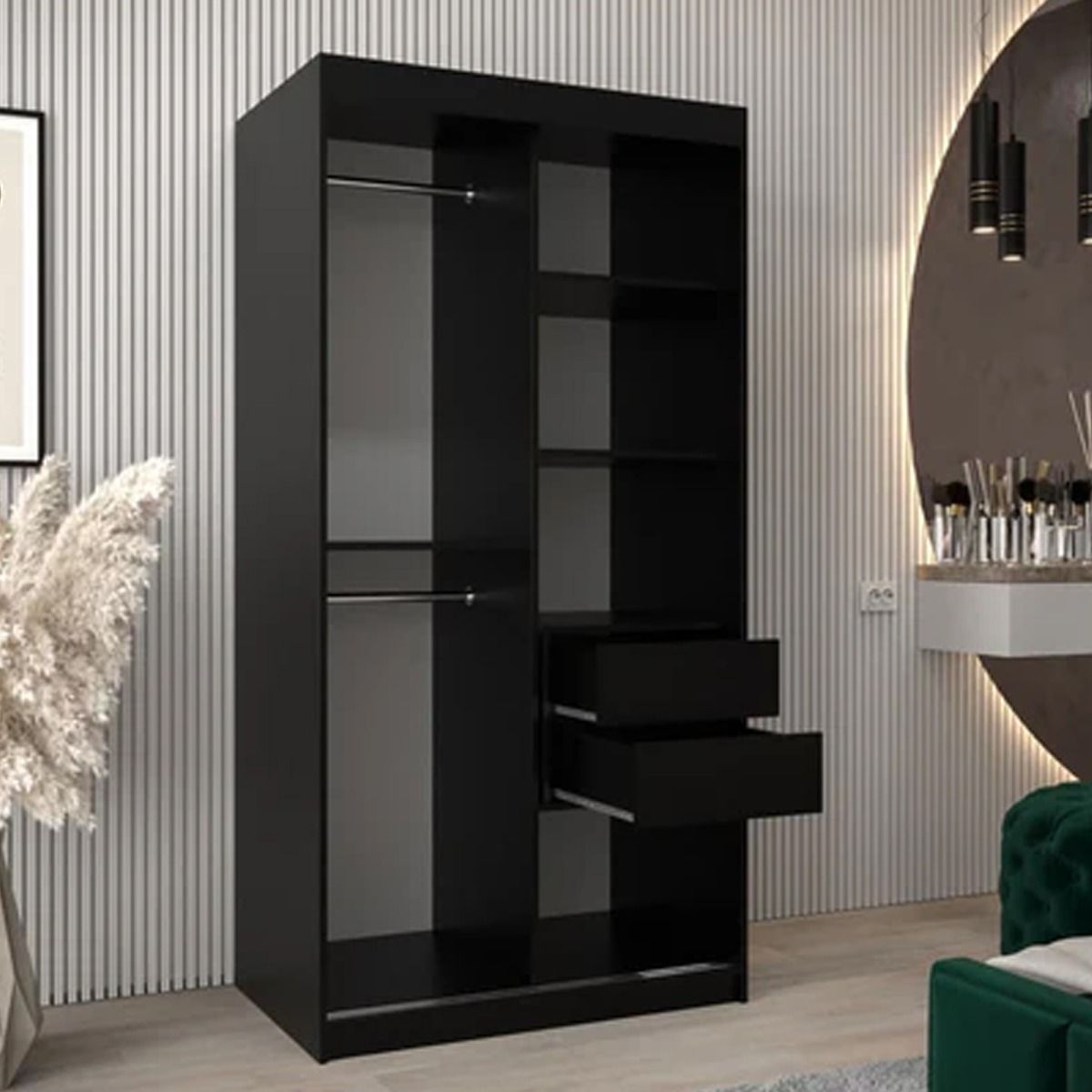 Sliding Wardrobe - SPURDLE 2 Door Mirrored Wardrobe Oak Artisan 100cm
