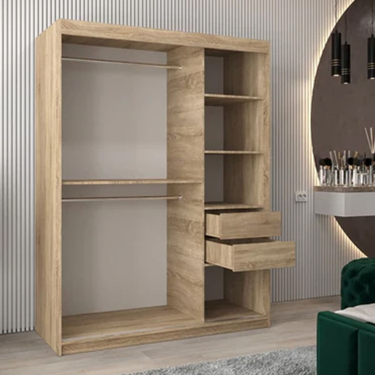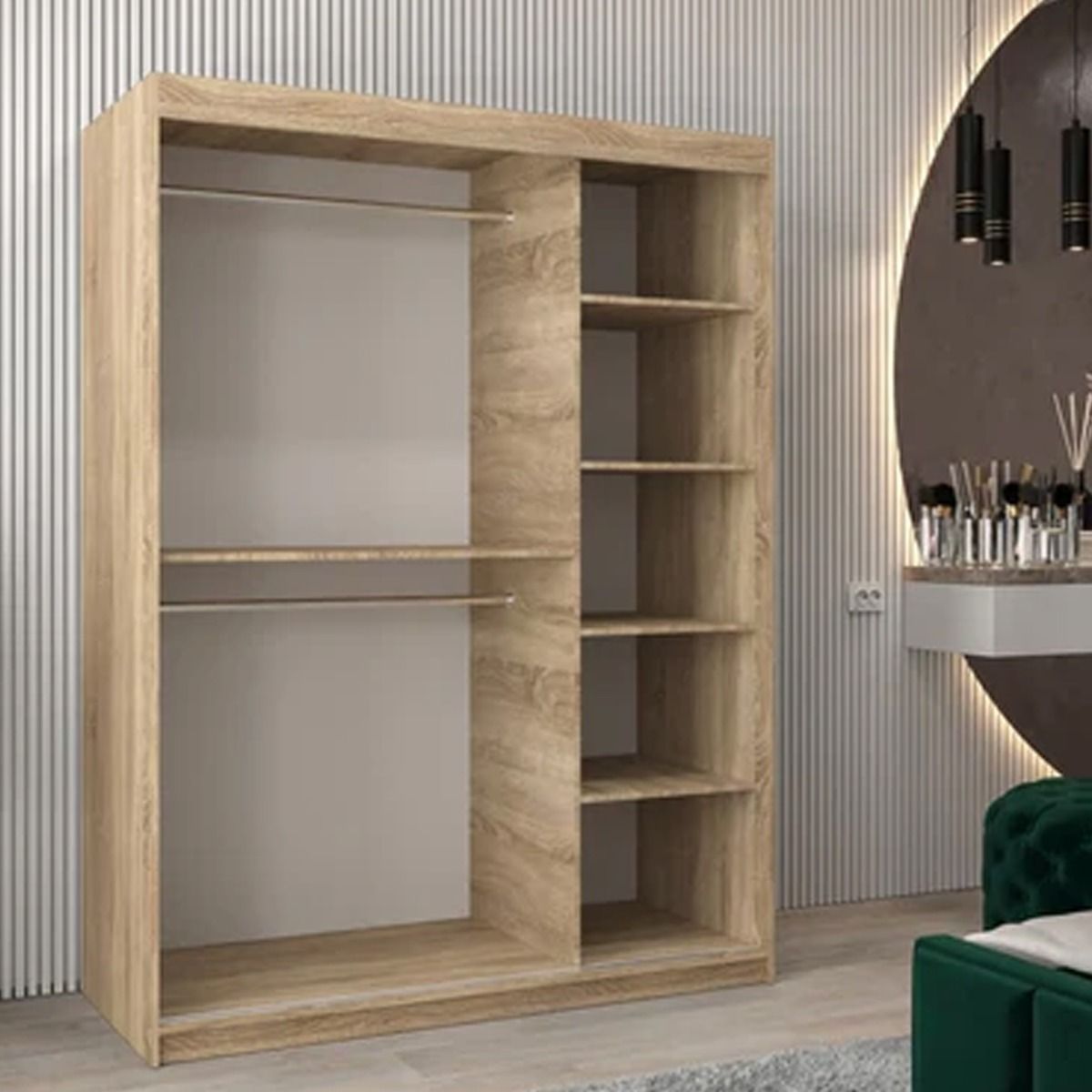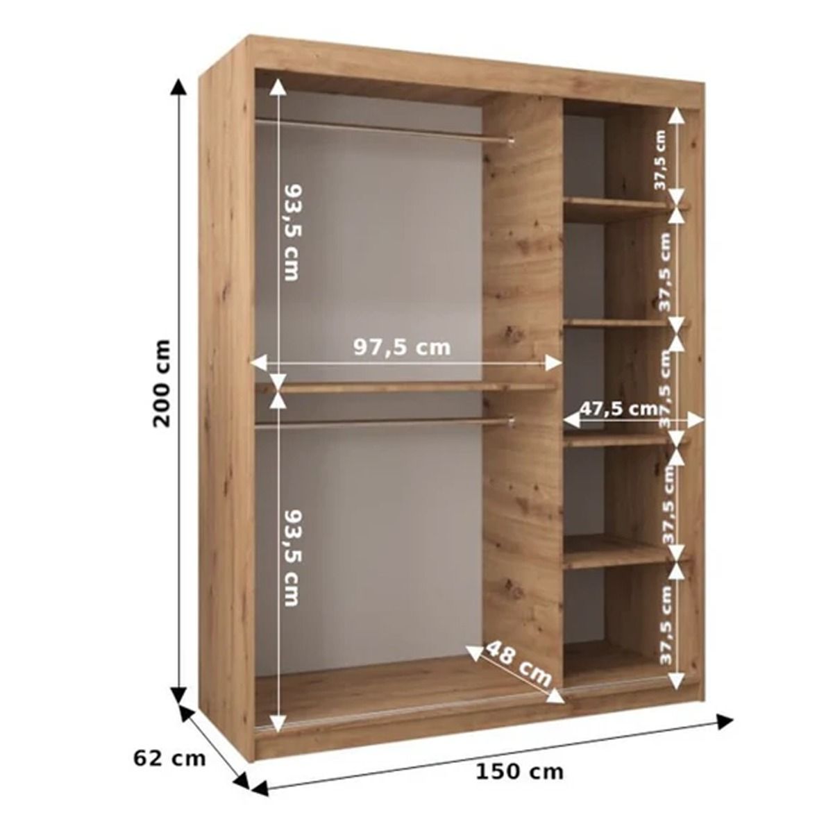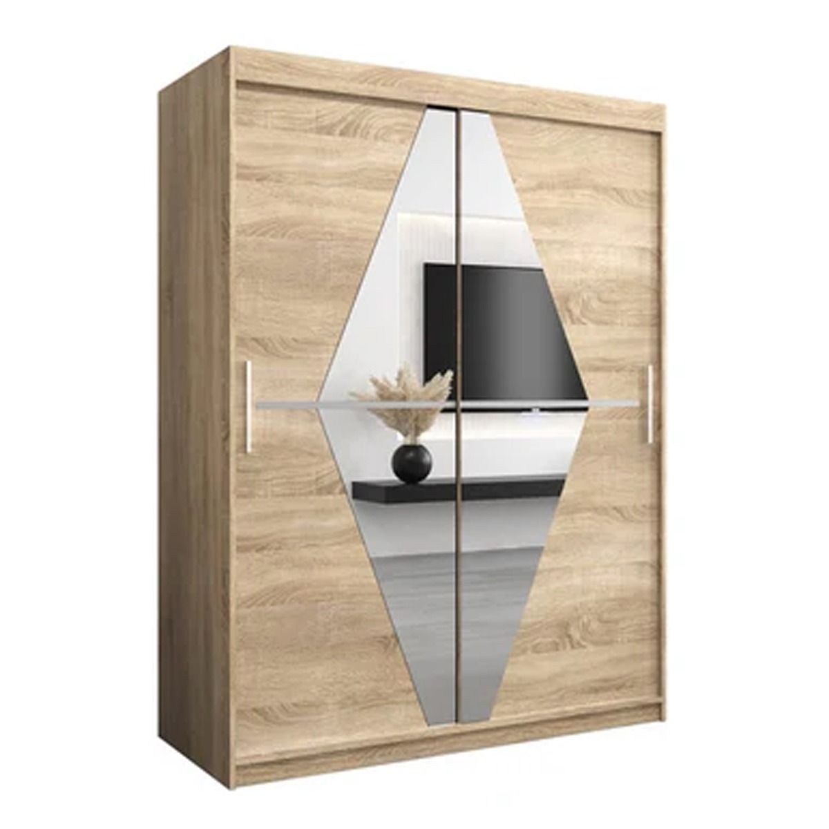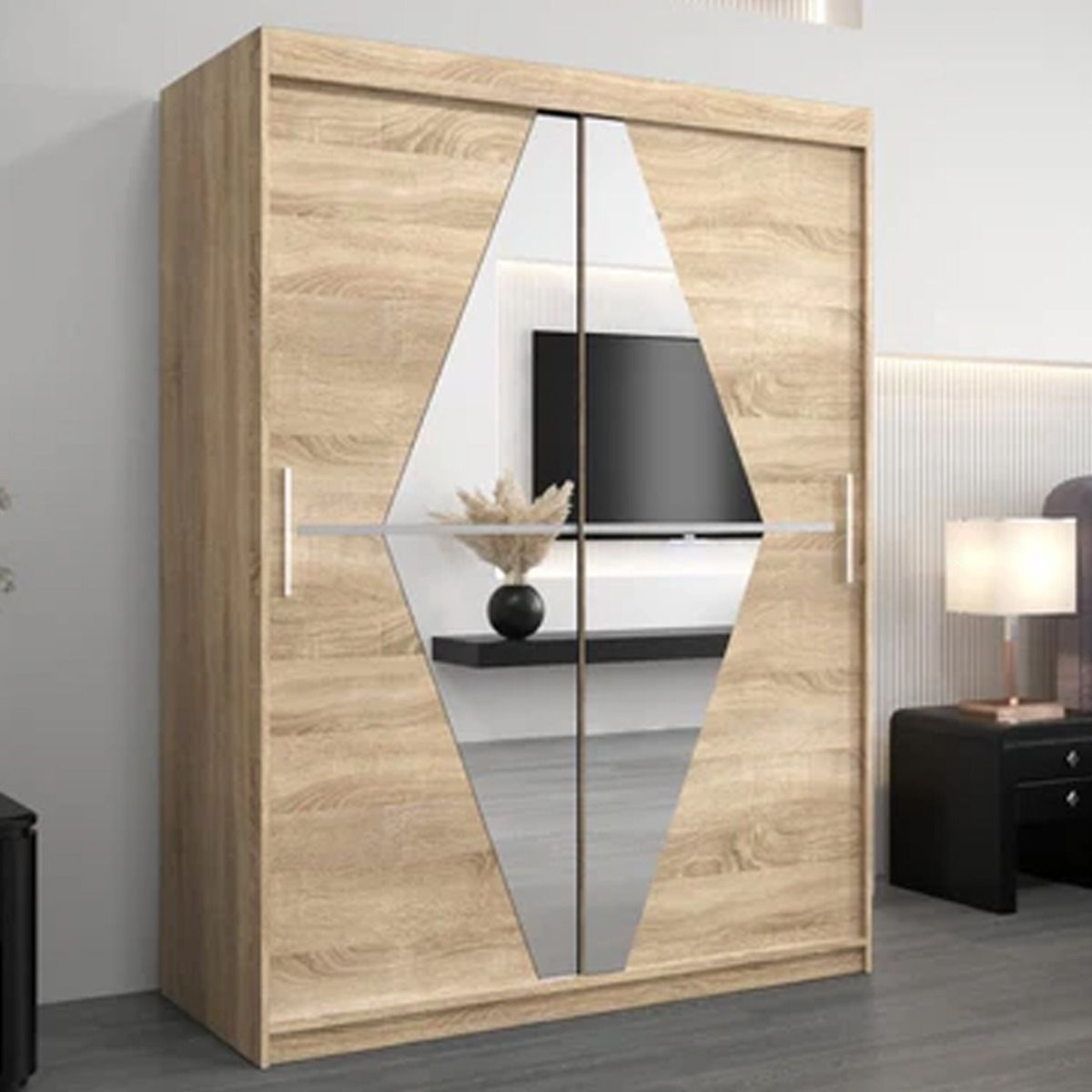 Sliding Wardrobe - SPURDLE 2 Door Mirrored Wardrobe Oak Sonoma 150cm