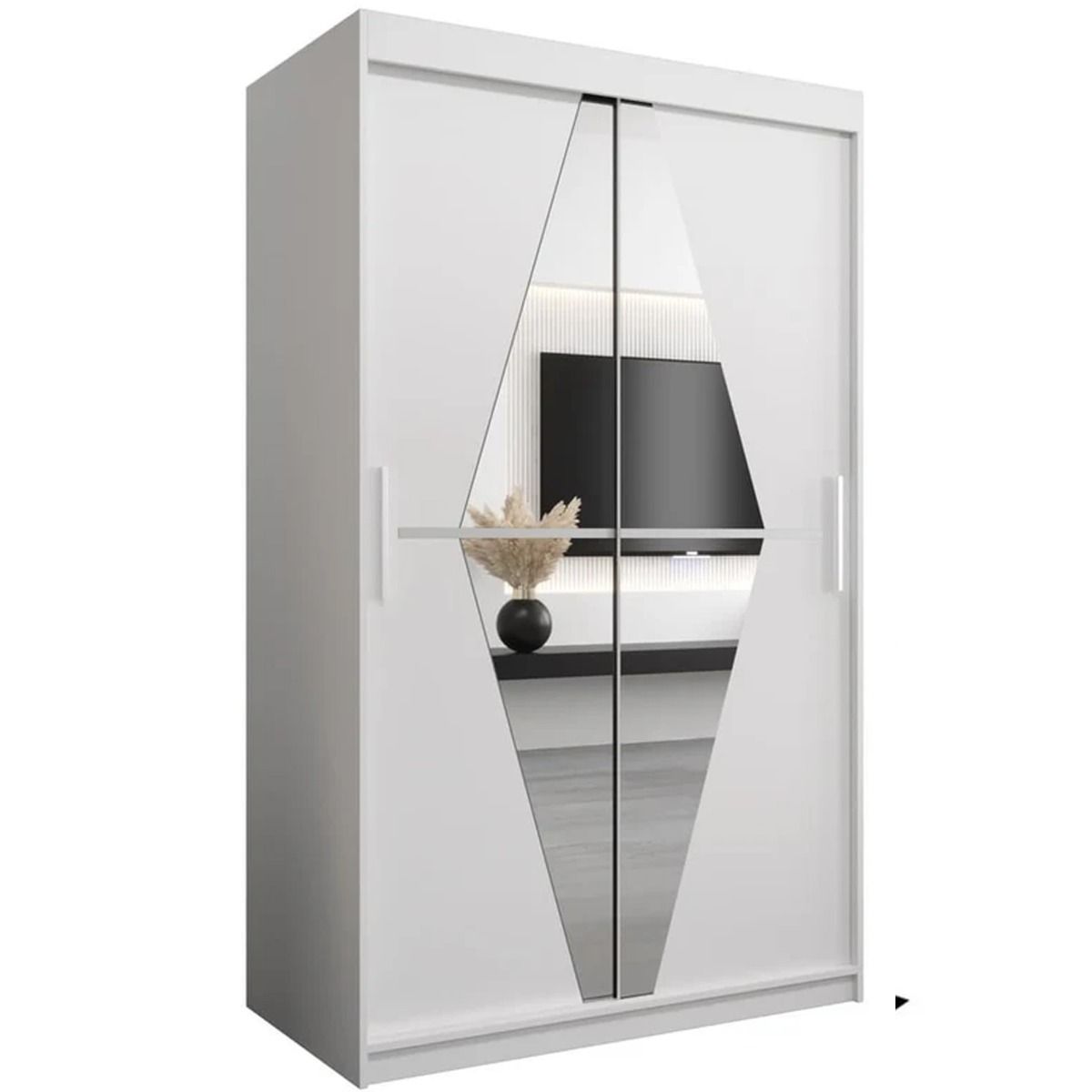 Sliding Wardrobe - SPURDLE 2 Door Mirrored Wardrobe White 120cm