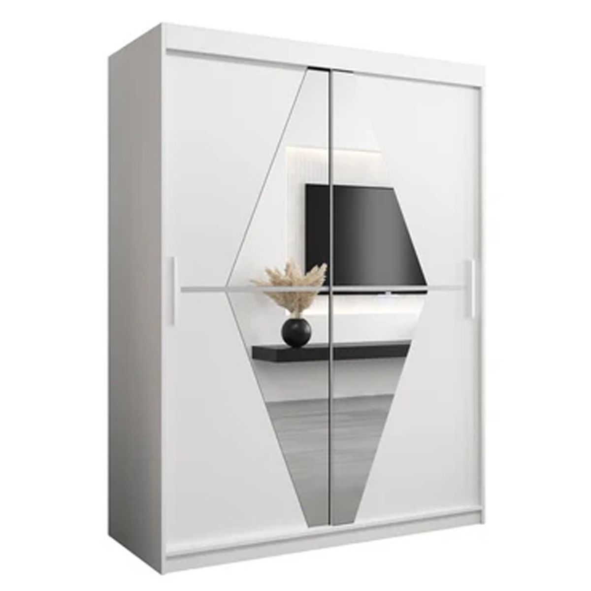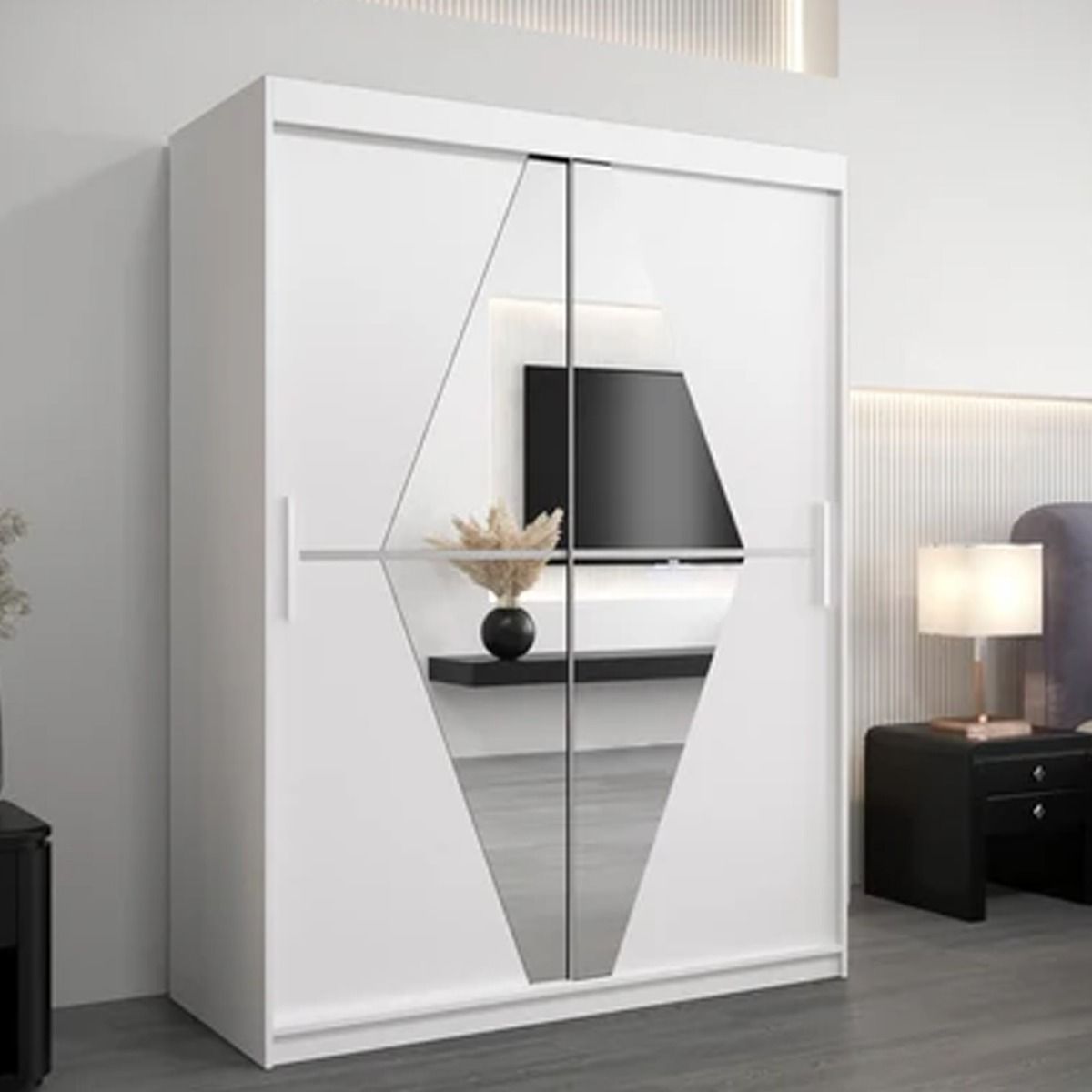 Sliding Wardrobe - SPURDLE 2 Door Mirrored Wardrobe White 150cm