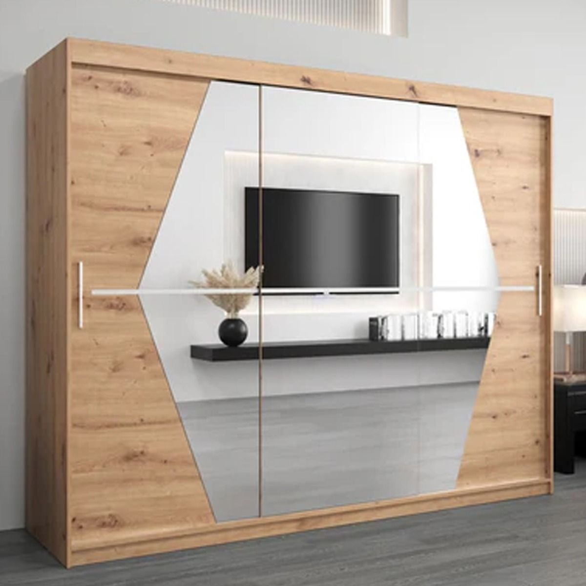 Sliding Wardrobe - SPURDLE 3 Door Mirrored Wardrobe Oak Artisan 250cm