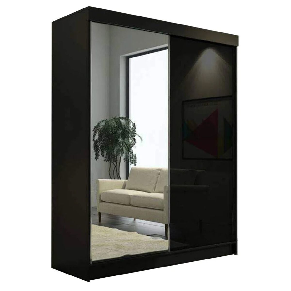 Sliding Wardrobe - TEXAS 2 Door Mirrored Wardrobe Black - 200cm