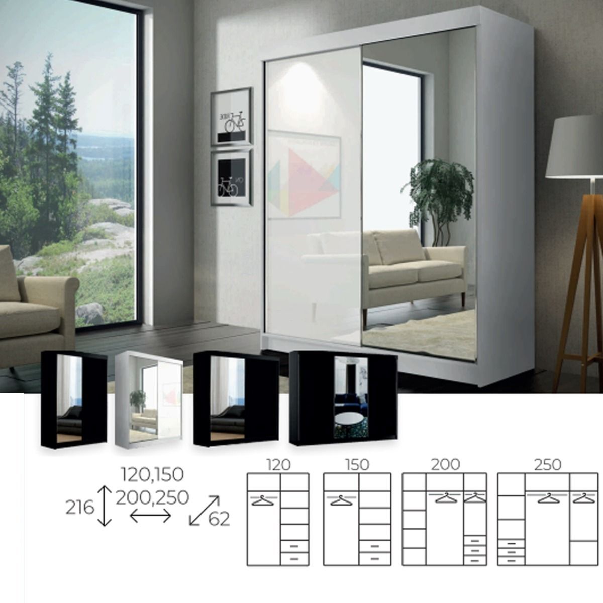 Sliding Wardrobe - TEXAS 3 Door Mirrored Wardrobe Black - 250cm