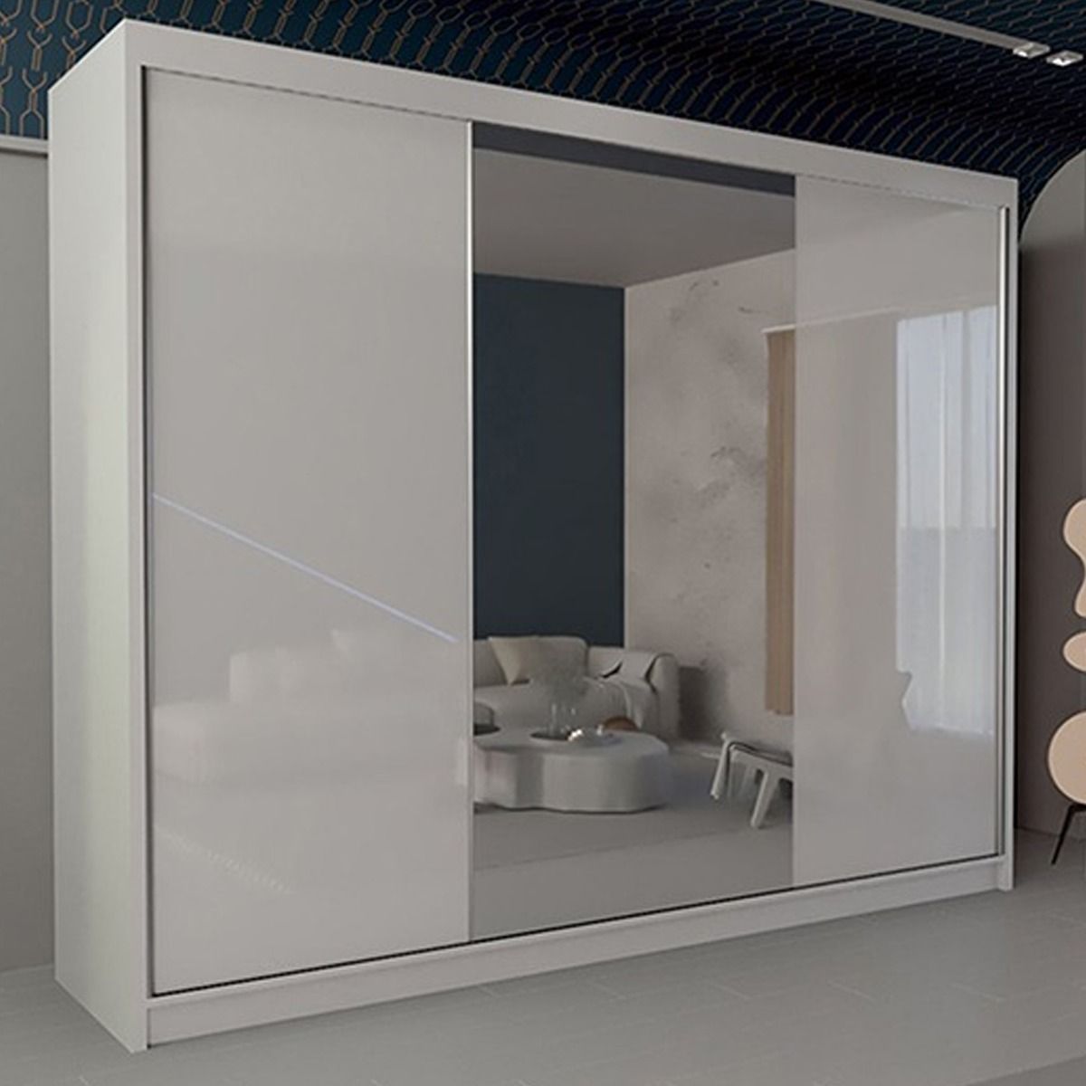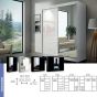 Sliding Wardrobe - TEXAS 3 Door Mirrored Wardrobe White - 250cm