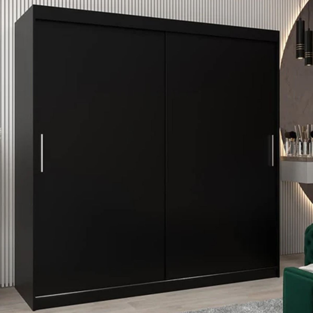 Sliding Wardrobe - TIVERTON 2 Door Wardrobe Black 200cm
