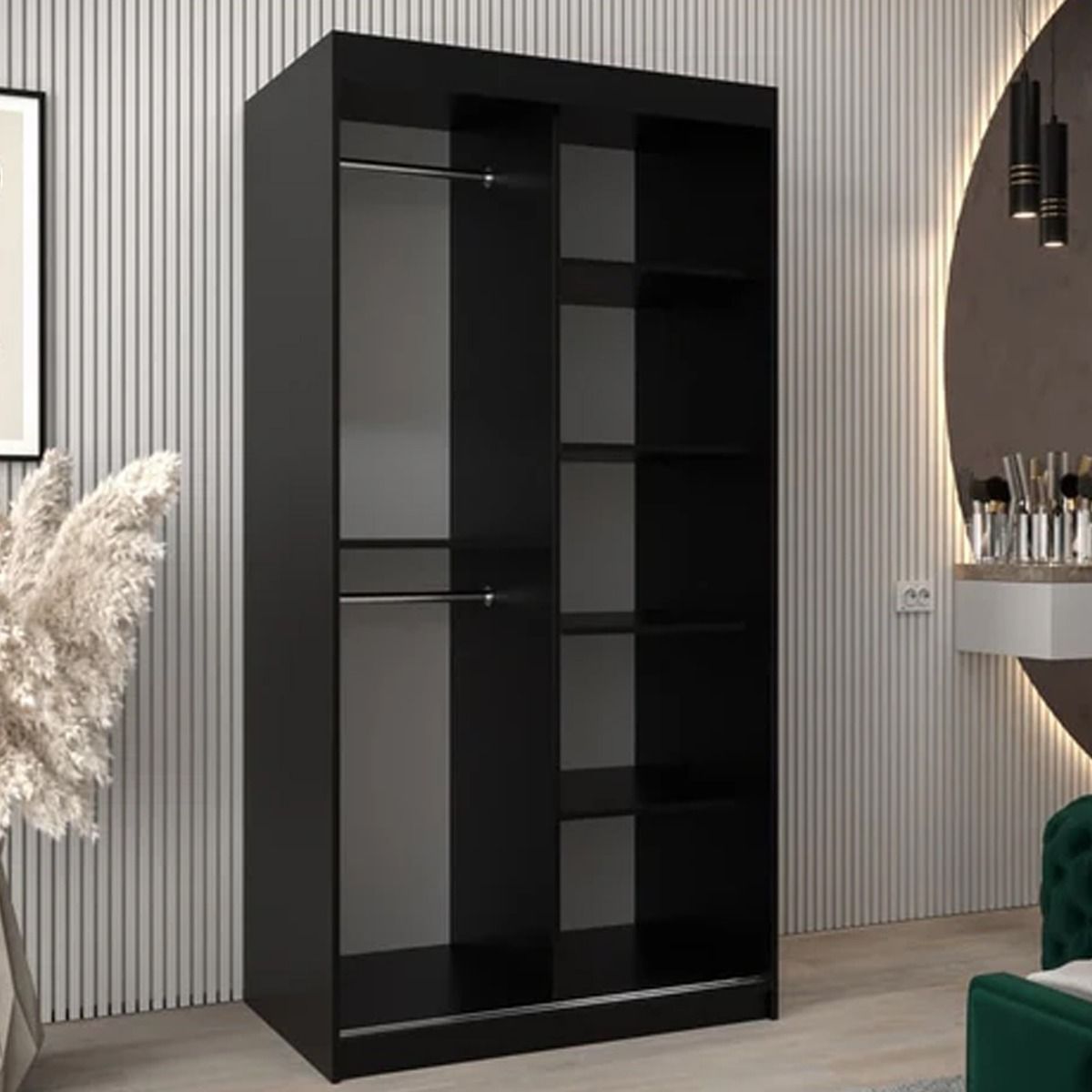 Sliding Wardrobe - TIVERTON I 2 Door Mirrored Wardrobe Black 100cm