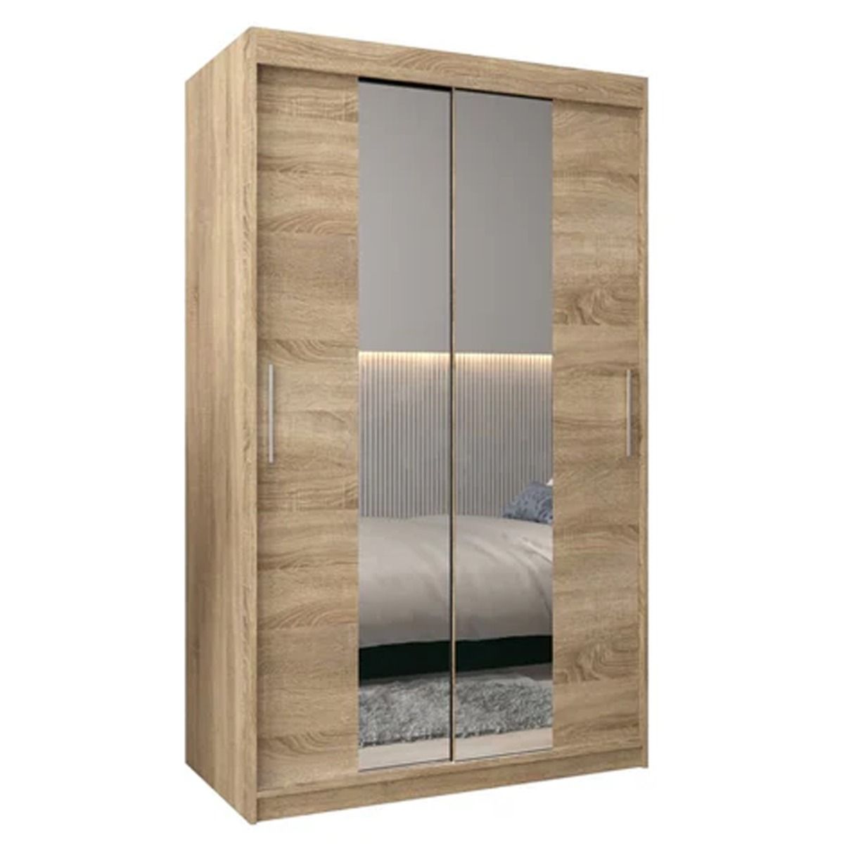 Sliding Wardrobe - TIVERTON I 2 Door Mirrored Wardrobe Oak Sonoma 120cm