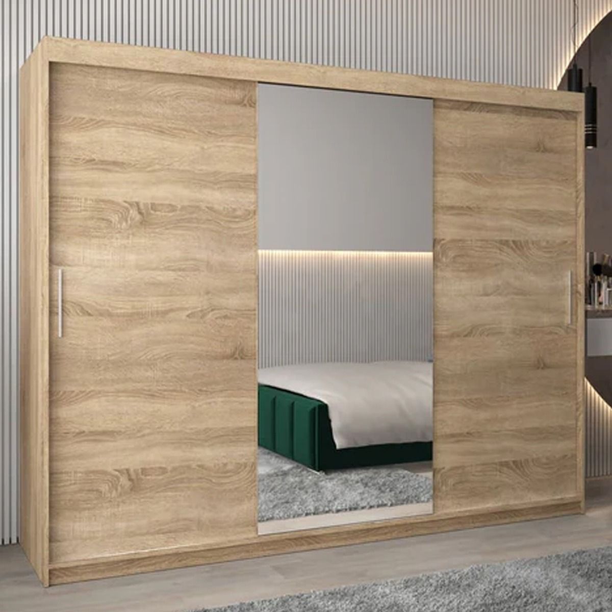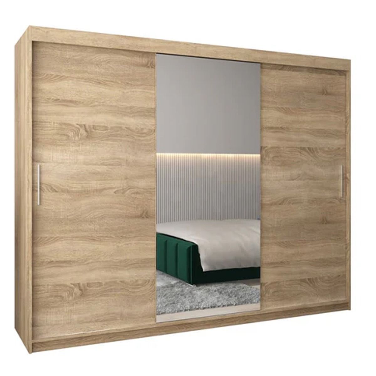 Sliding Wardrobe - TIVERTON I 3 Door Mirrored Wardrobe Oak Sonoma 250cm