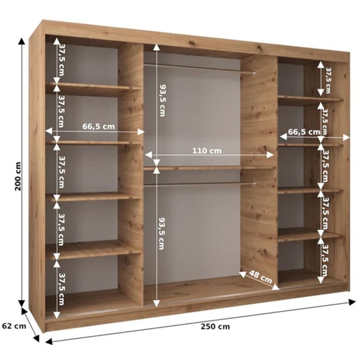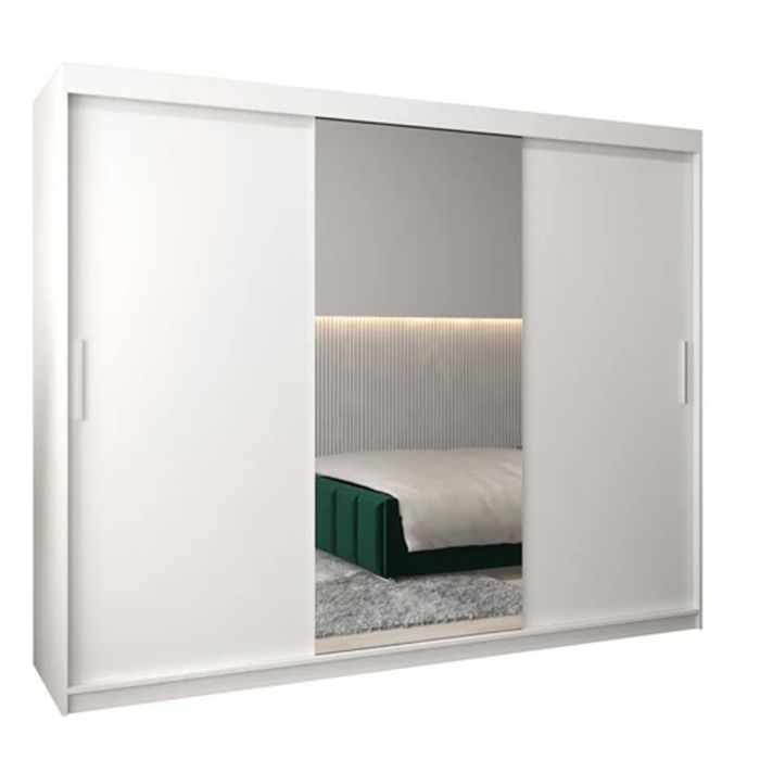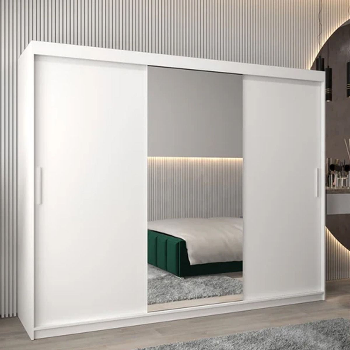 Sliding Wardrobe - TIVERTON I 3 Door Mirrored Wardrobe White 250cm