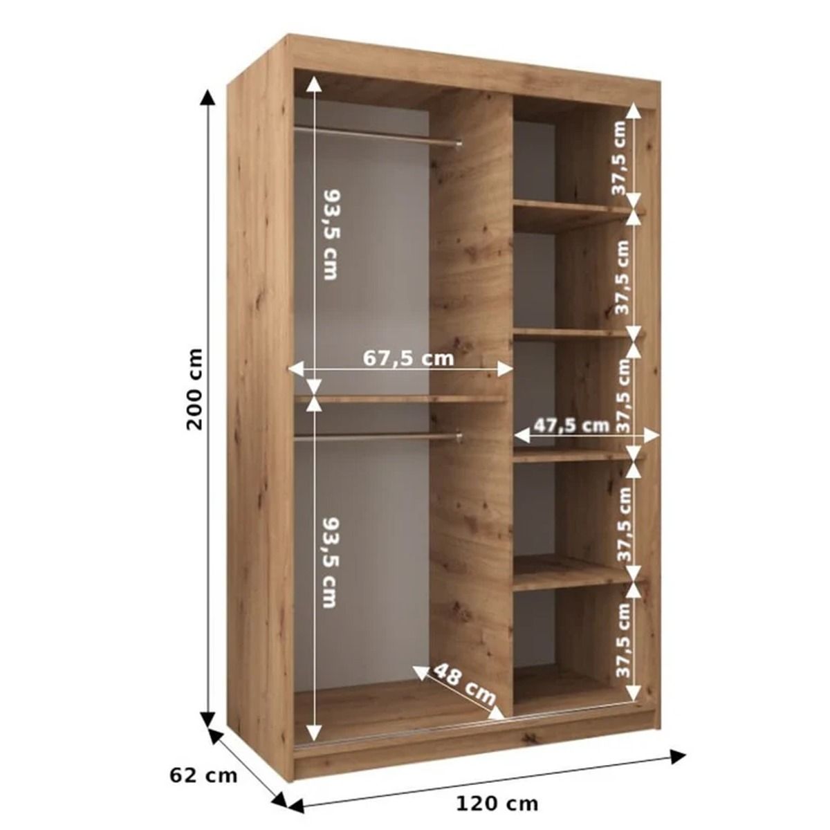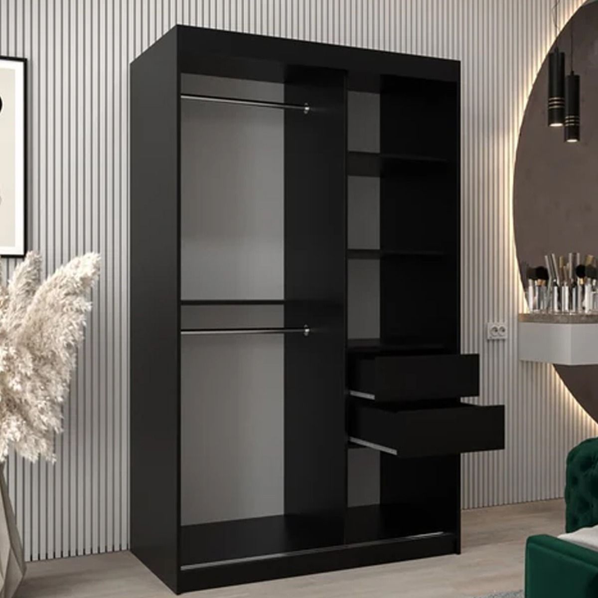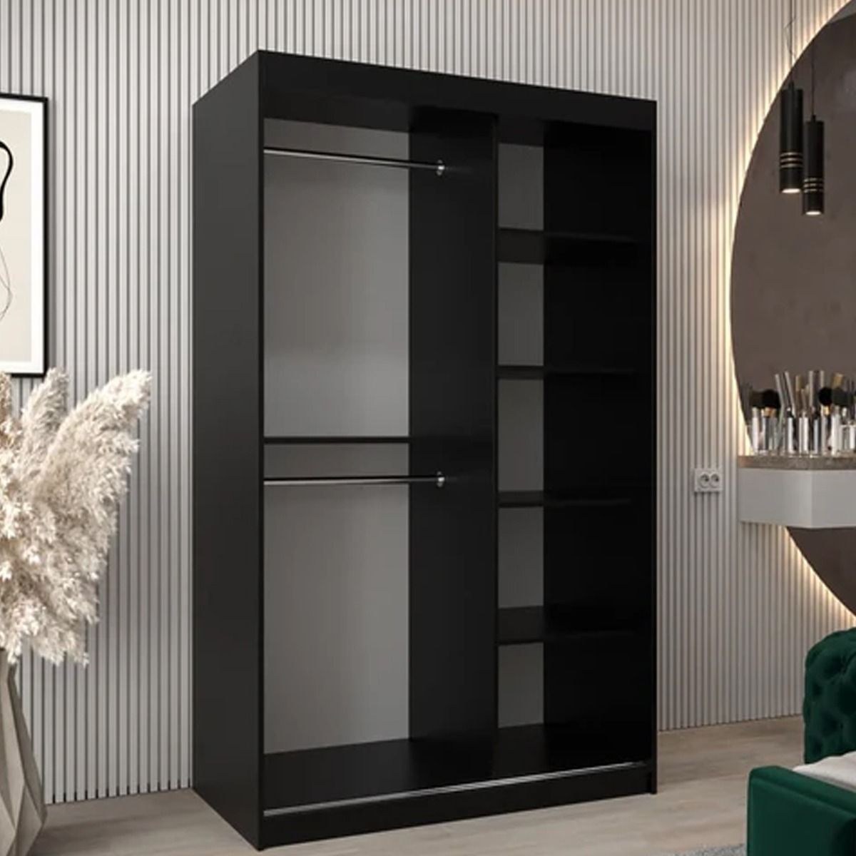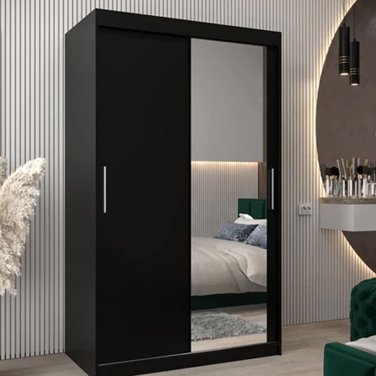 Sliding Wardrobe - TIVERTON II 2 Door Mirrored Wardrobe Black 120cm