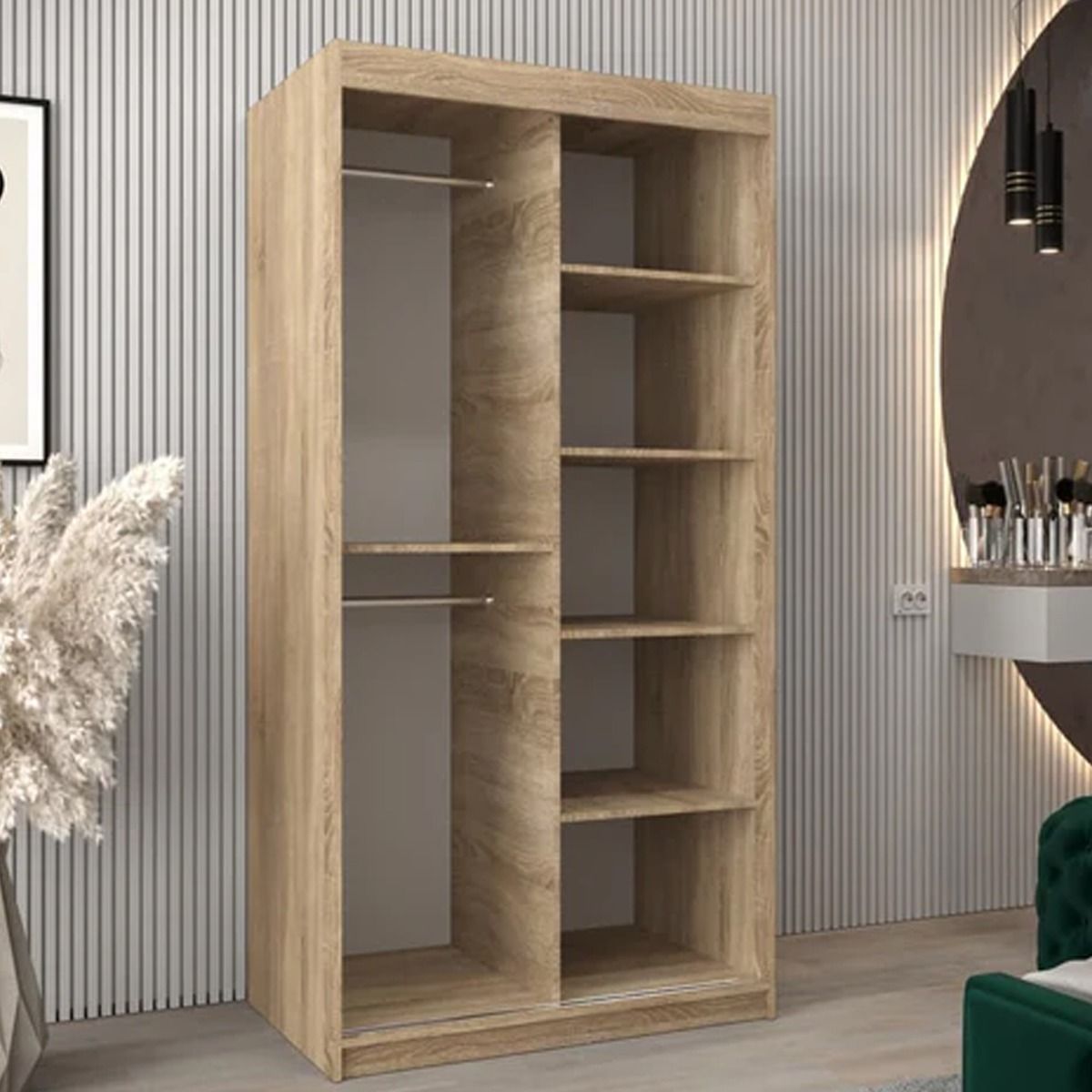 Sliding Wardrobe - TIVERTON II 2 Door Mirrored Wardrobe Oak Sonoma 100cm