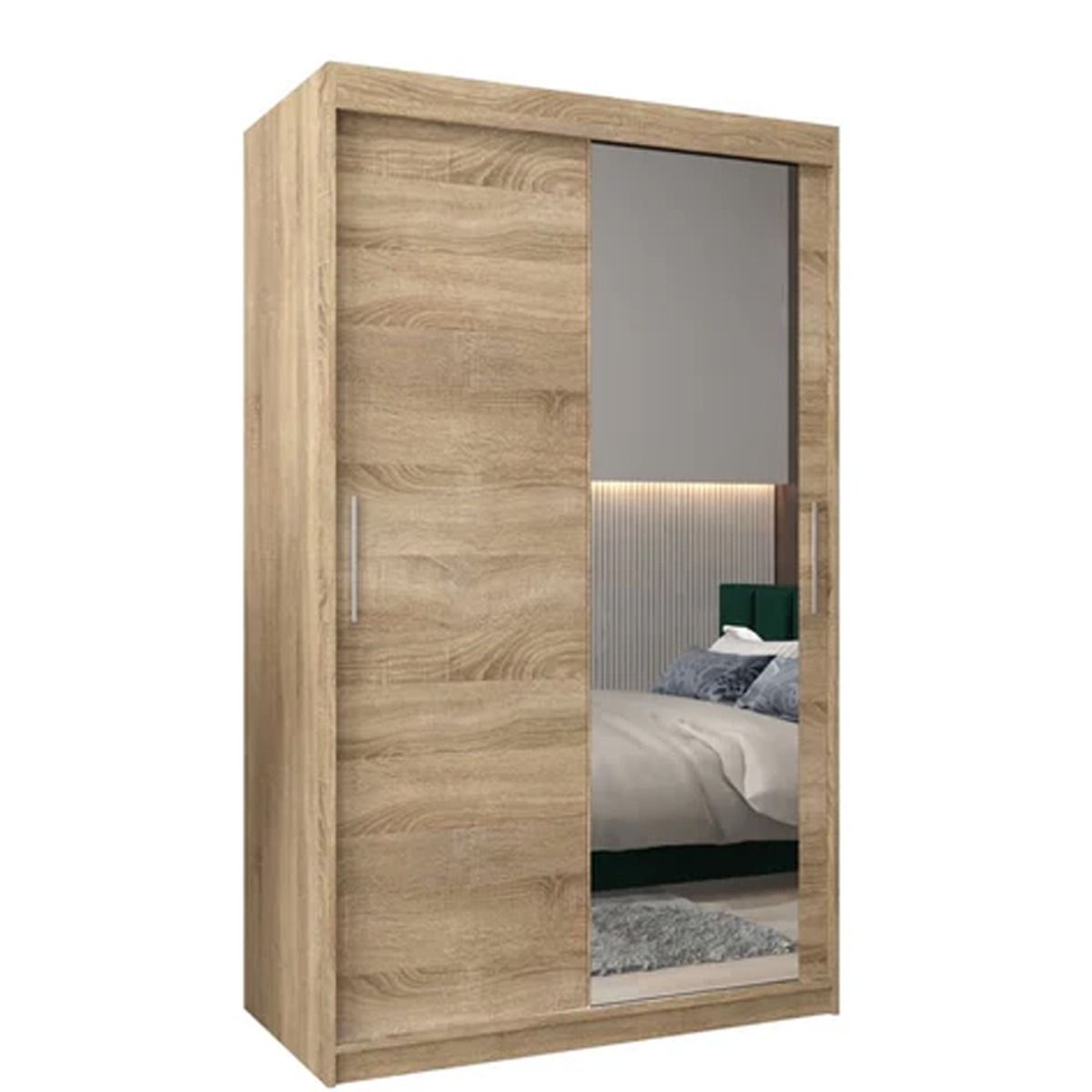 Sliding Wardrobe - TIVERTON II 2 Door Mirrored Wardrobe Oak Sonoma 120cm