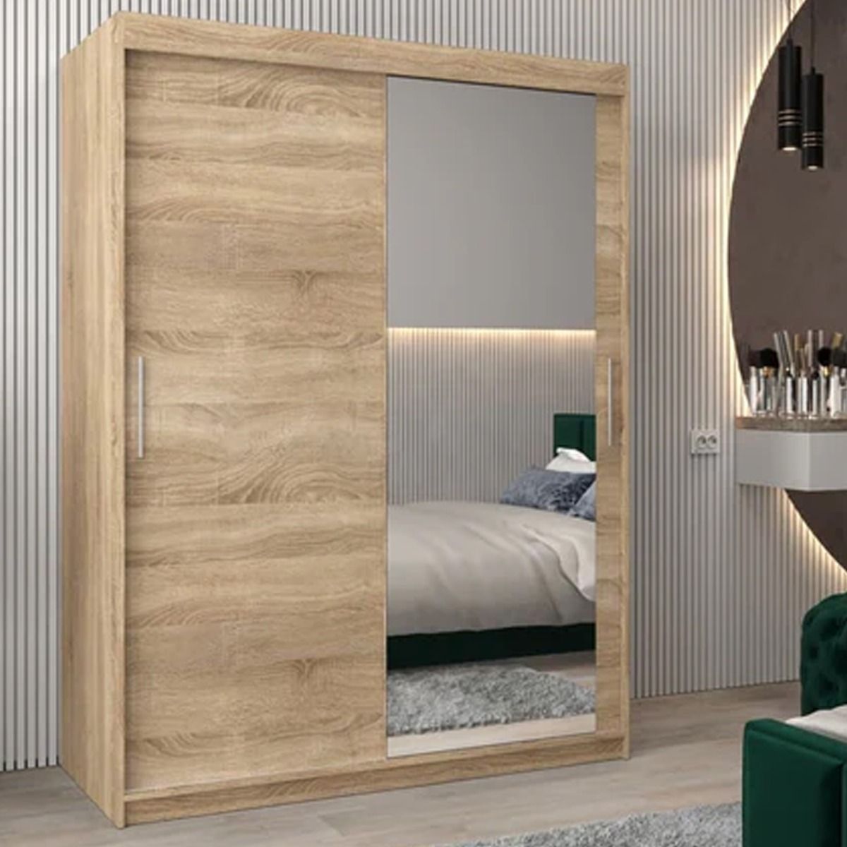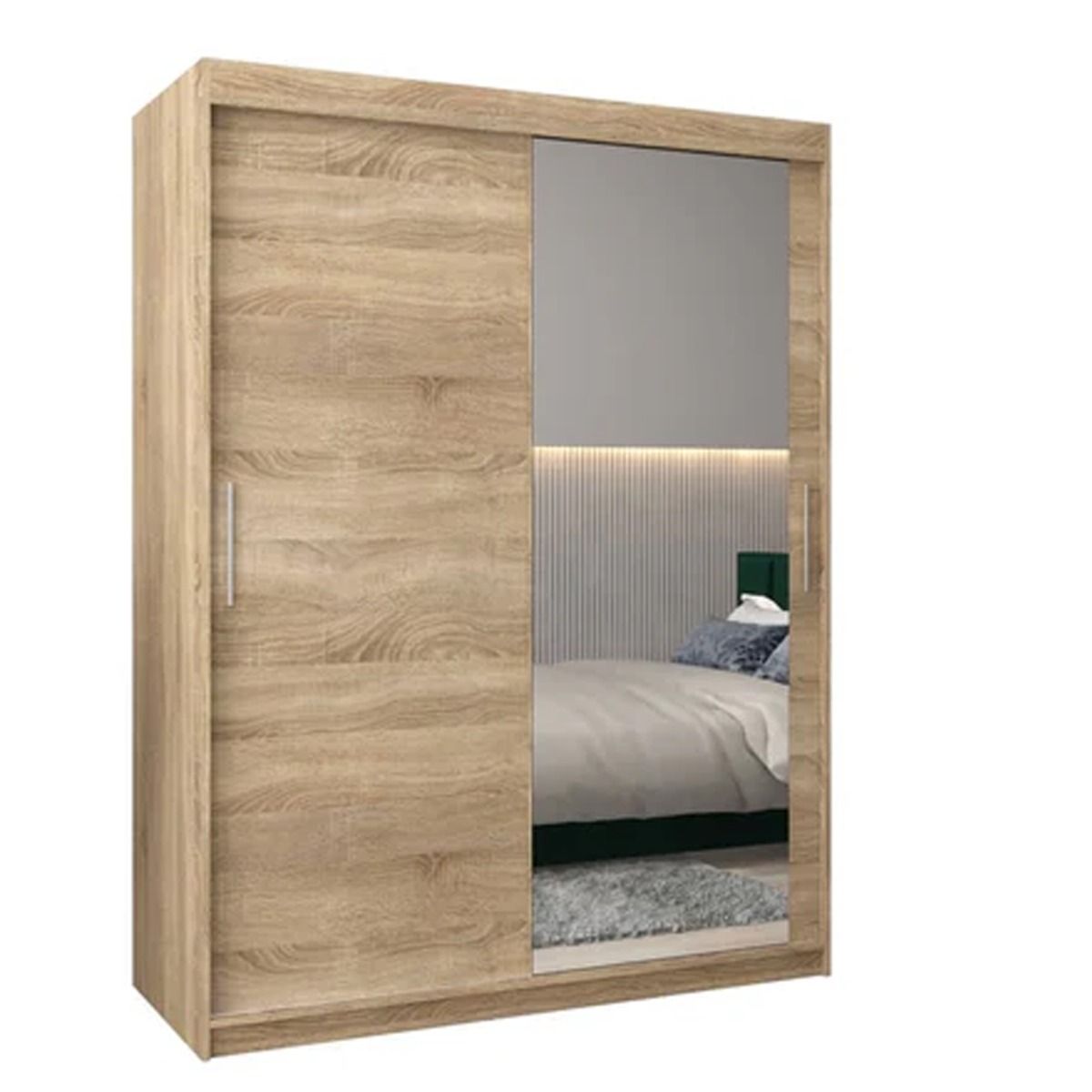 Sliding Wardrobe - TIVERTON II 2 Door Mirrored Wardrobe Oak Sonoma 150cm