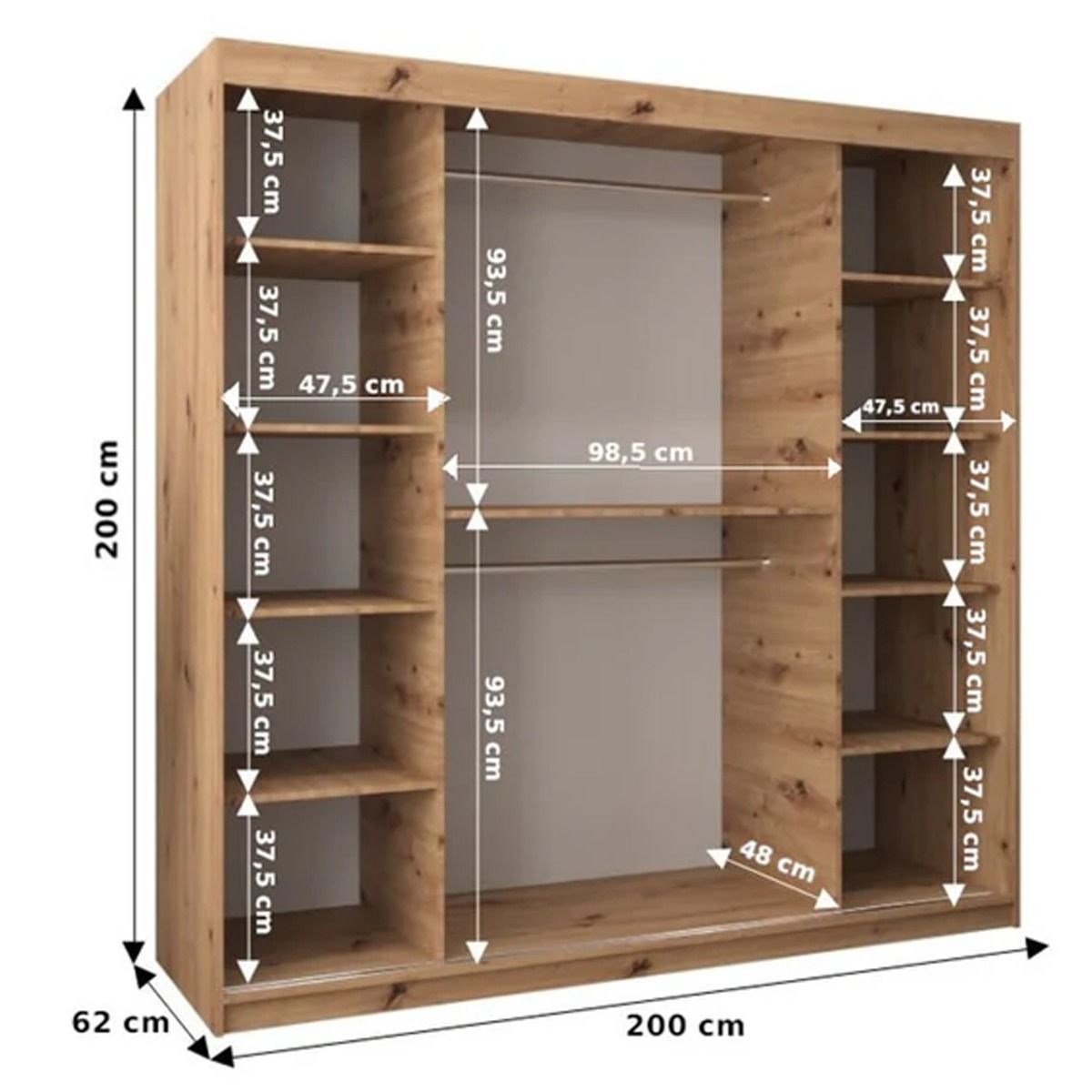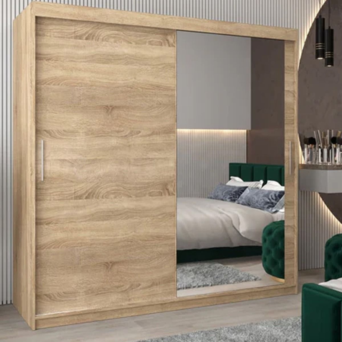 Sliding Wardrobe - TIVERTON II 2 Door Mirrored Wardrobe Oak Sonoma 200cm