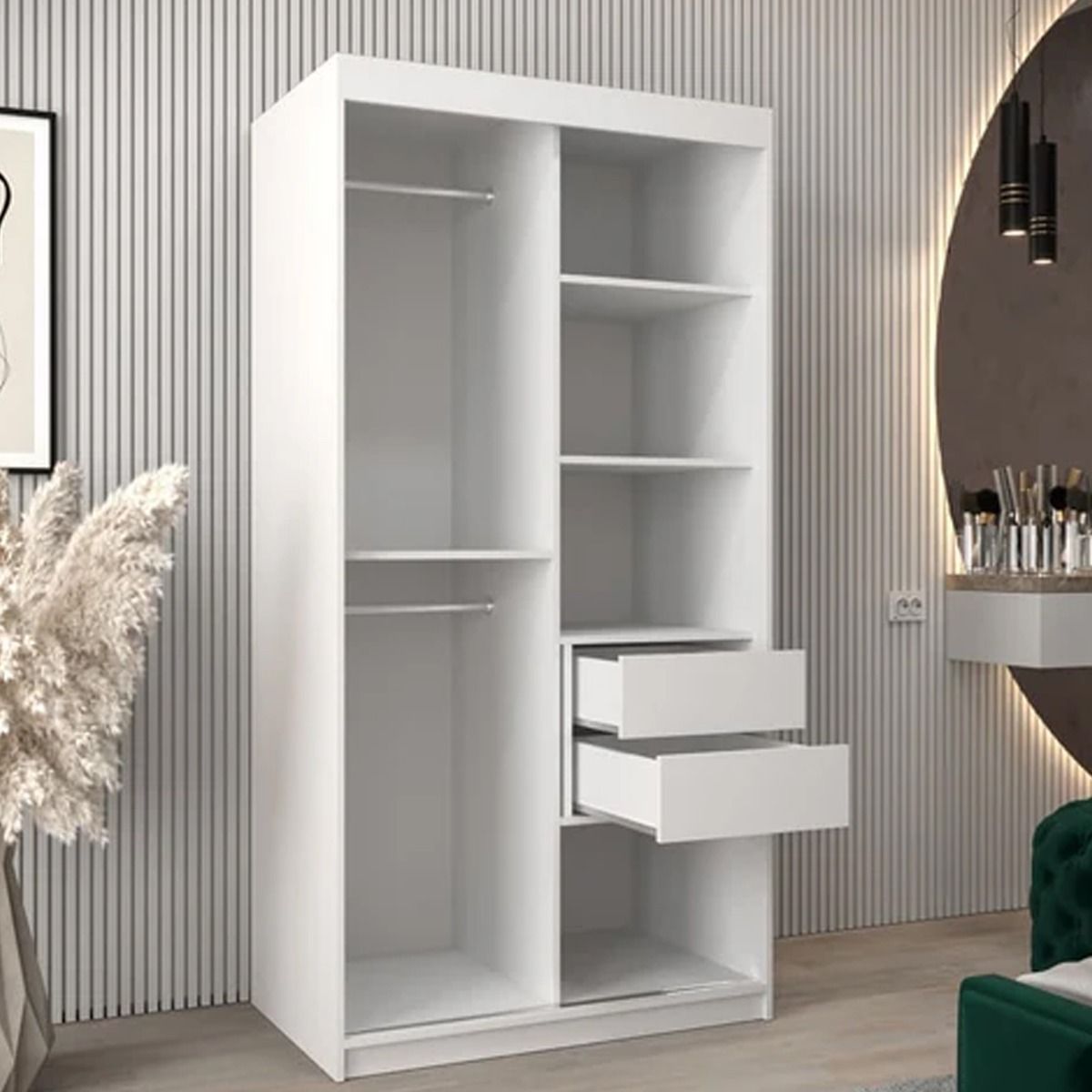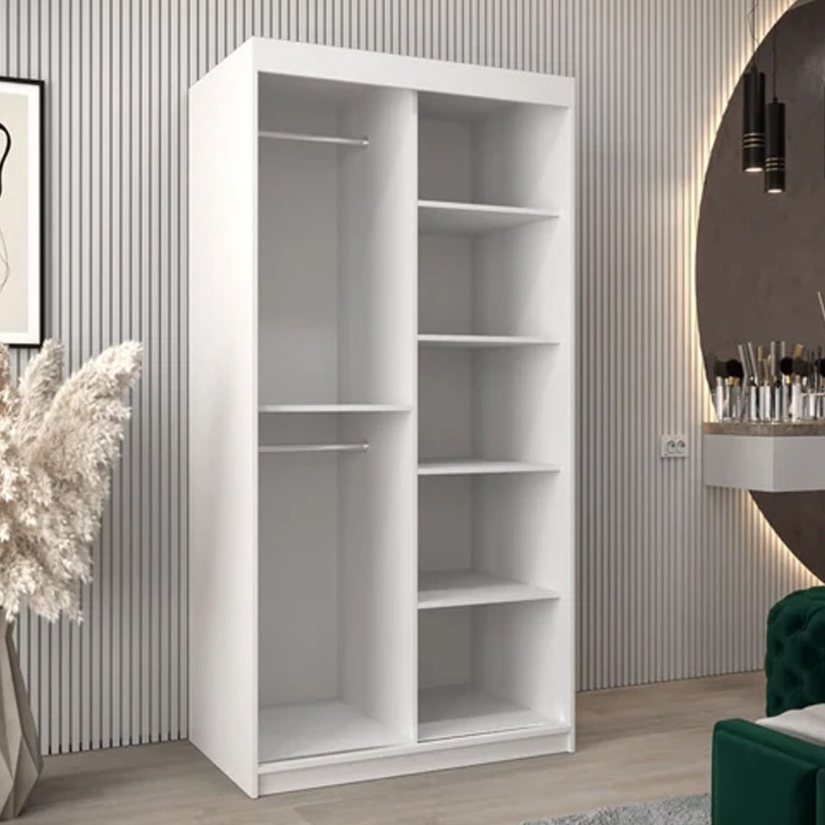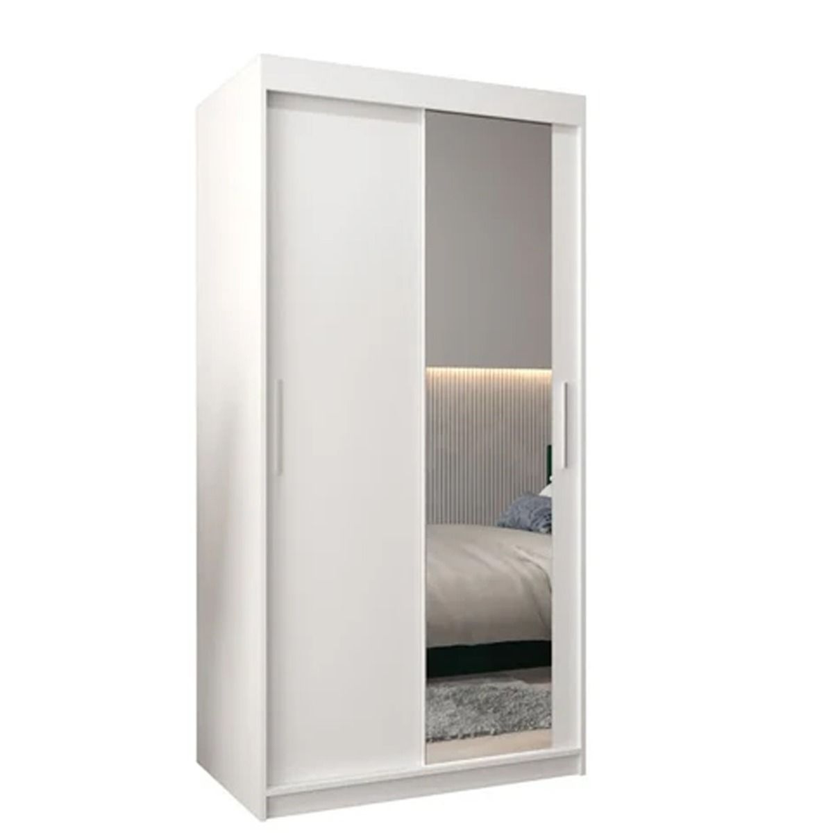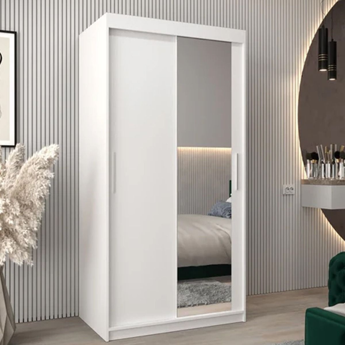 Sliding Wardrobe - TIVERTON II 2 Door Mirrored Wardrobe White 100cm