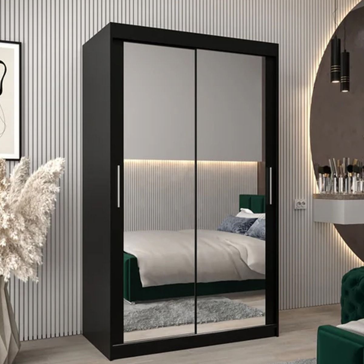 Sliding Wardrobe - TIVERTON III 2 Door Mirrored Wardrobe Black 120cm
