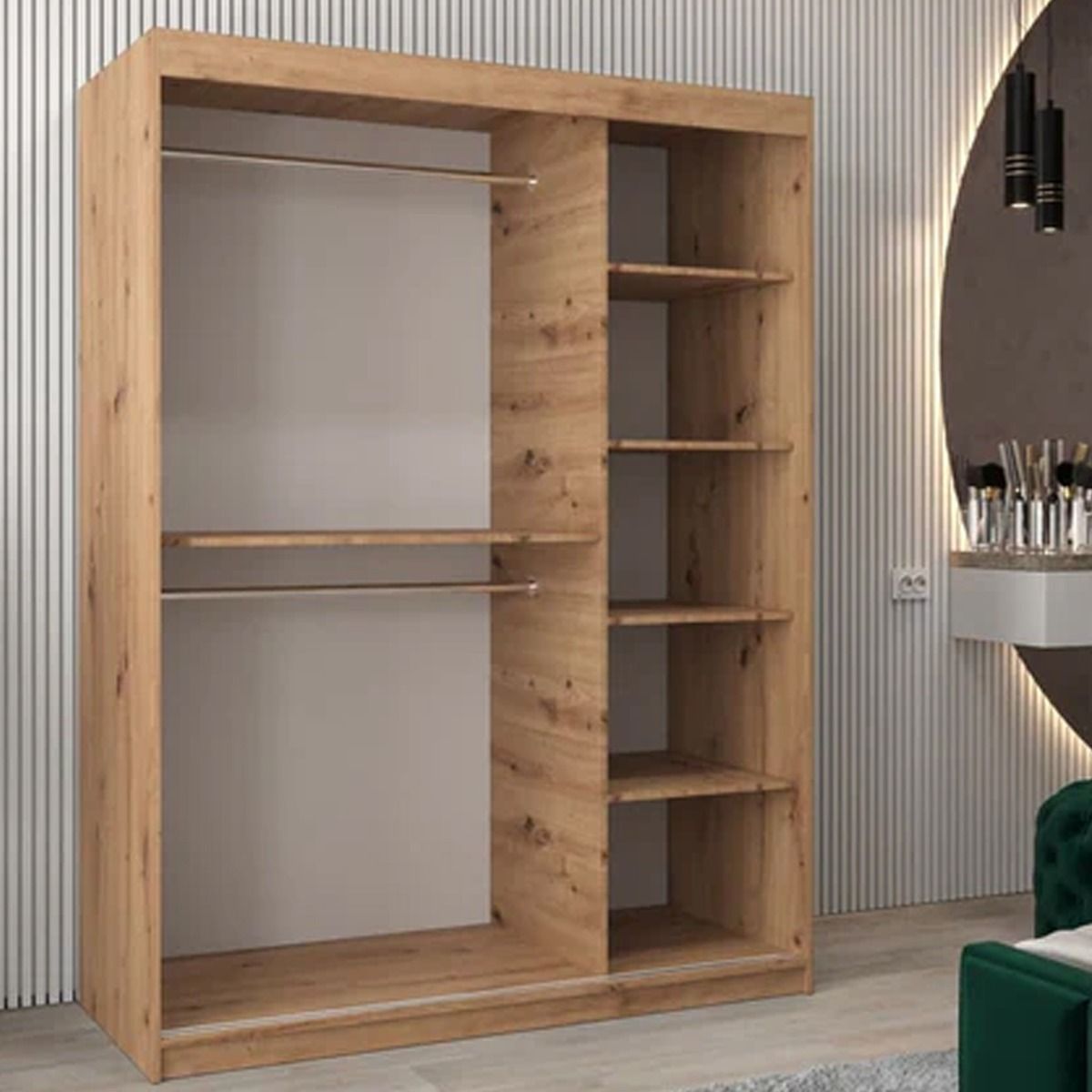 Sliding Wardrobe - TIVERTON III 2 Door Mirrored Wardrobe Oak Artisan 150cm