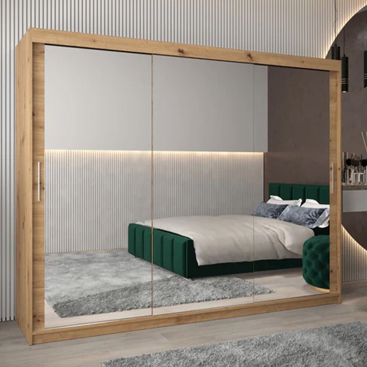 Sliding Wardrobe - TIVERTON III 3 Door Mirrored Wardrobe Oak Artisan 250cm