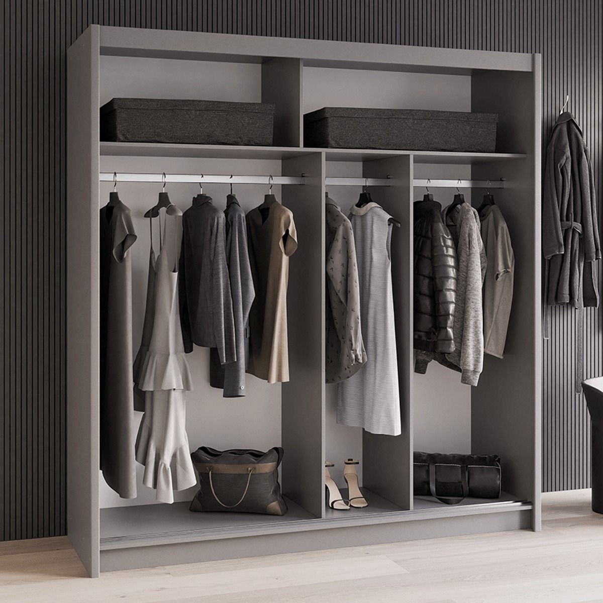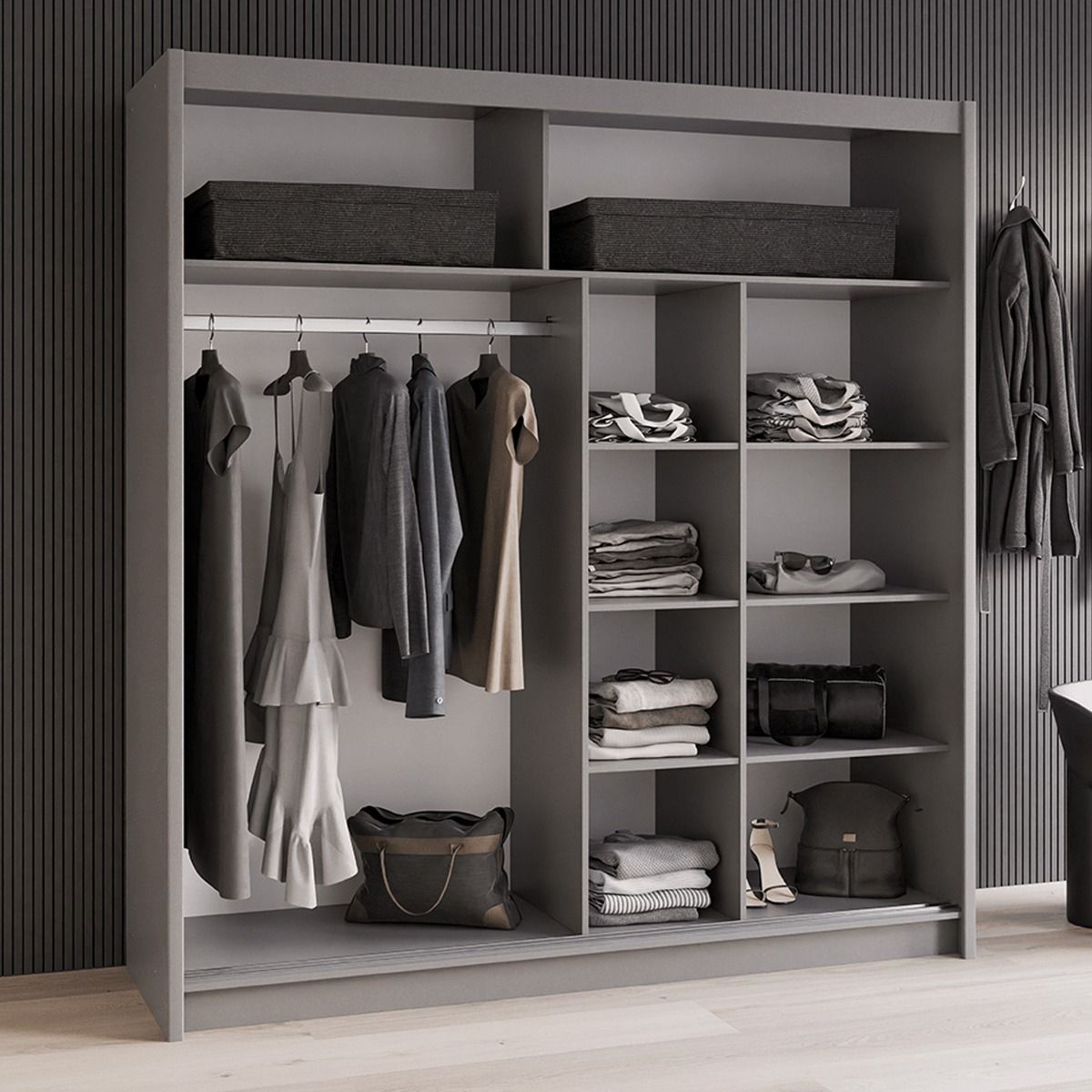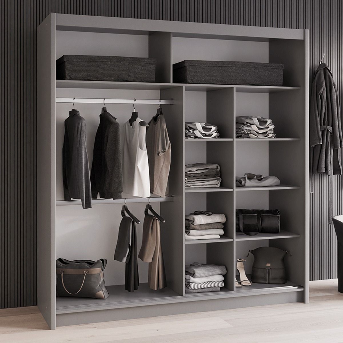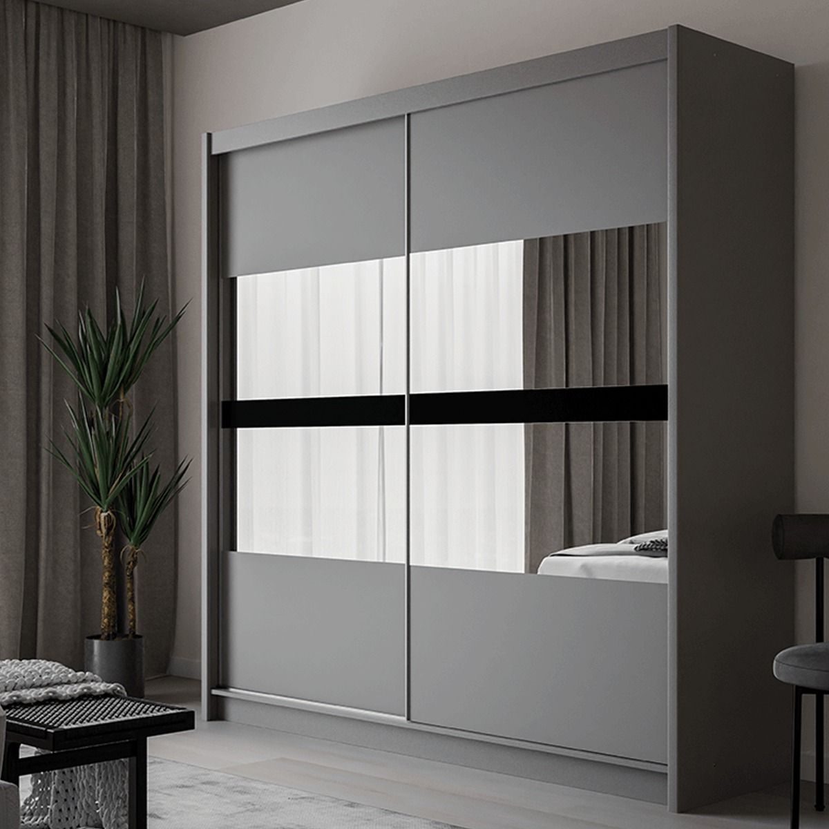 Sliding Wardrobe - TRAFFORD 2 Door Mirrored Wardrobe Graphite 203cm