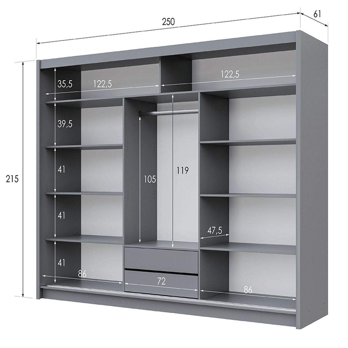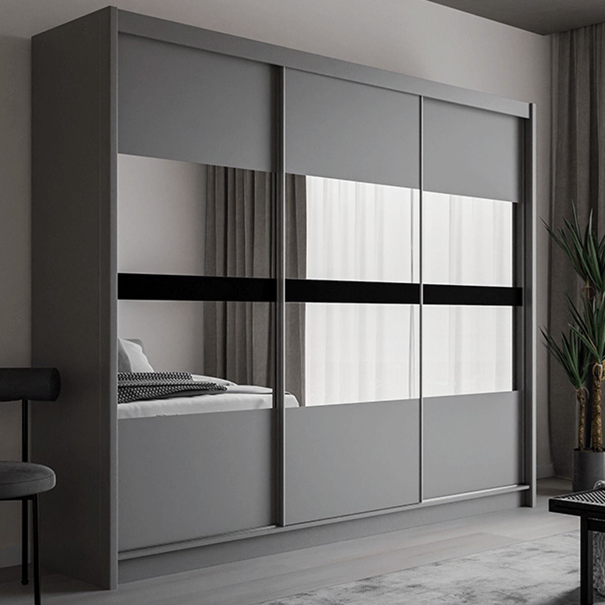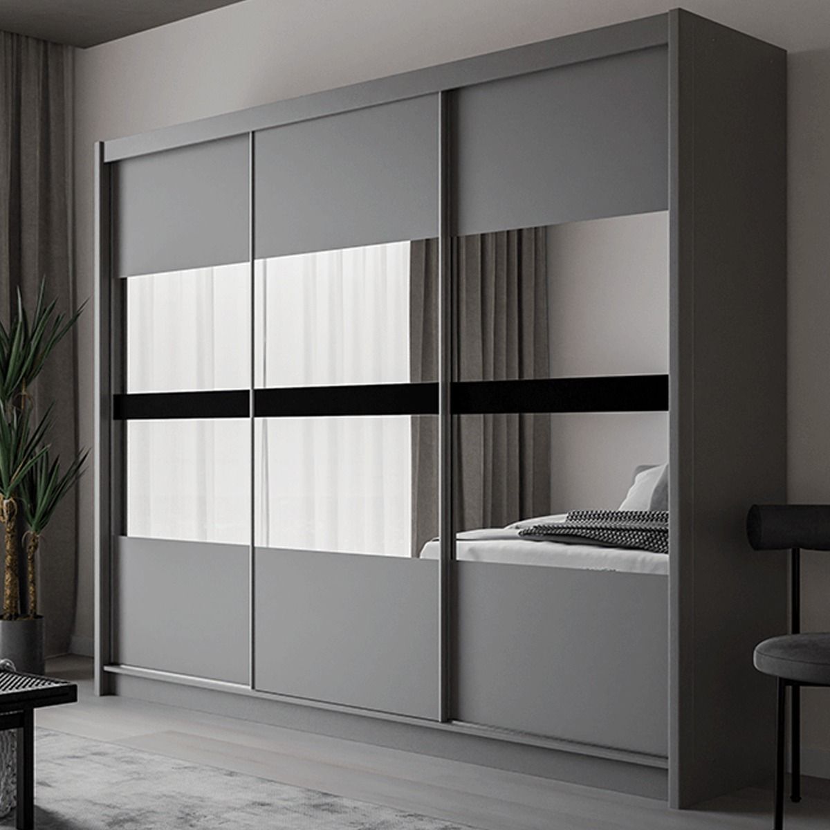 Sliding Wardrobe - TRAFFORD 3 Door Mirrored Wardrobe Graphite 250cm