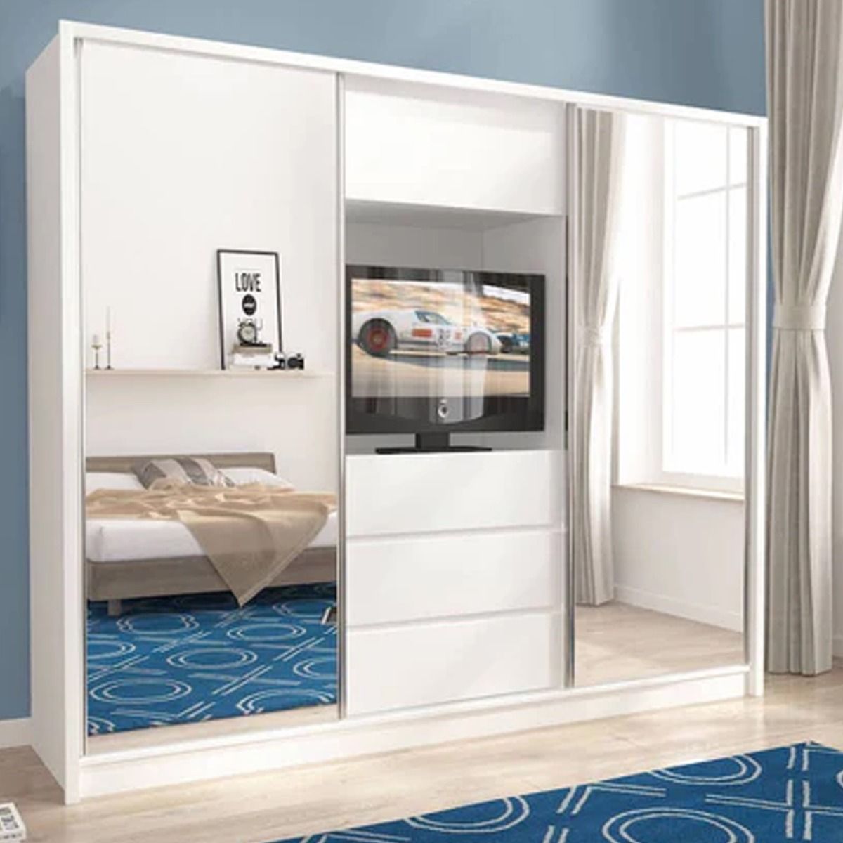 Sliding Wardrobe - TUSCON 2 Door Mirrored Wardrobe White 254cm
