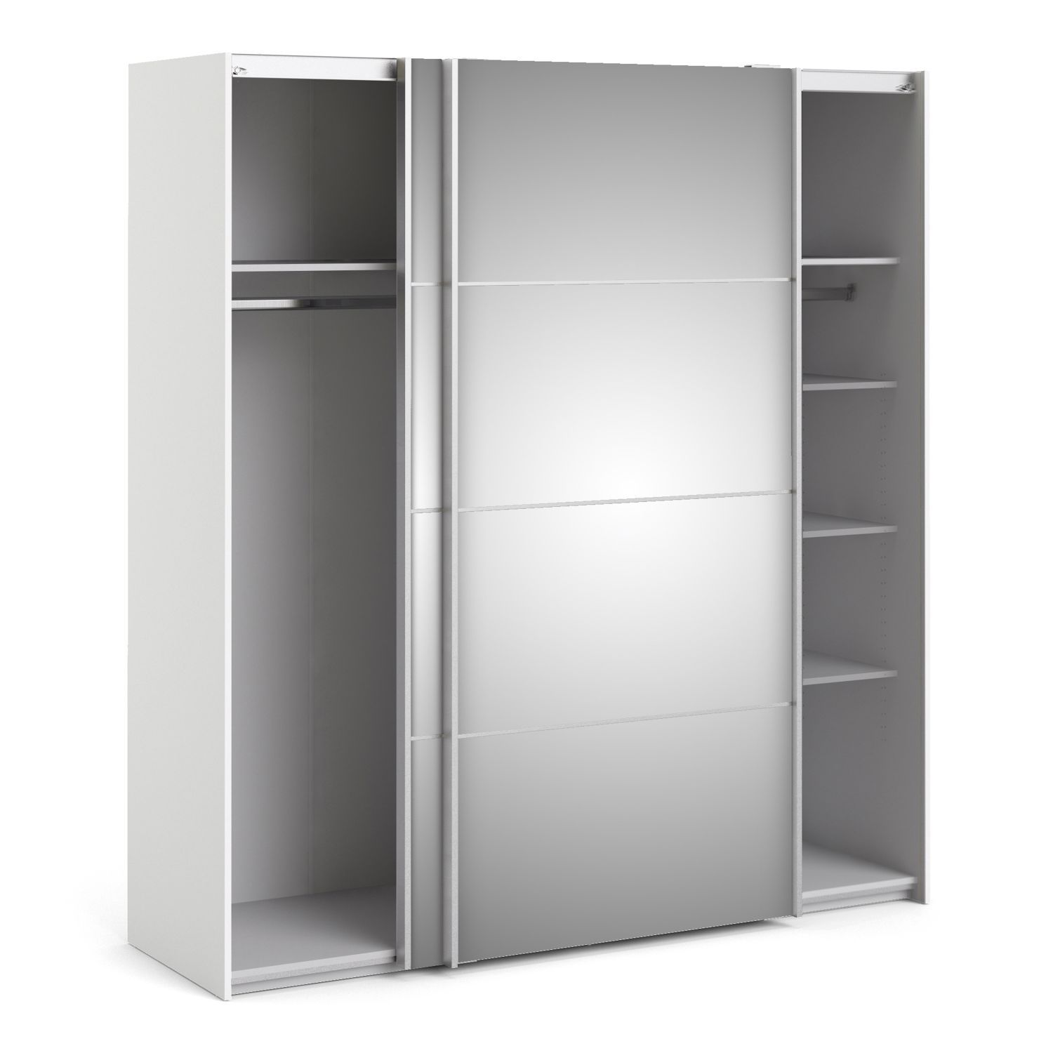 Sliding Wardrobe - VASTO 2 Door Mirrored Wardrobe with 5 Shelves Silver 182.4cm