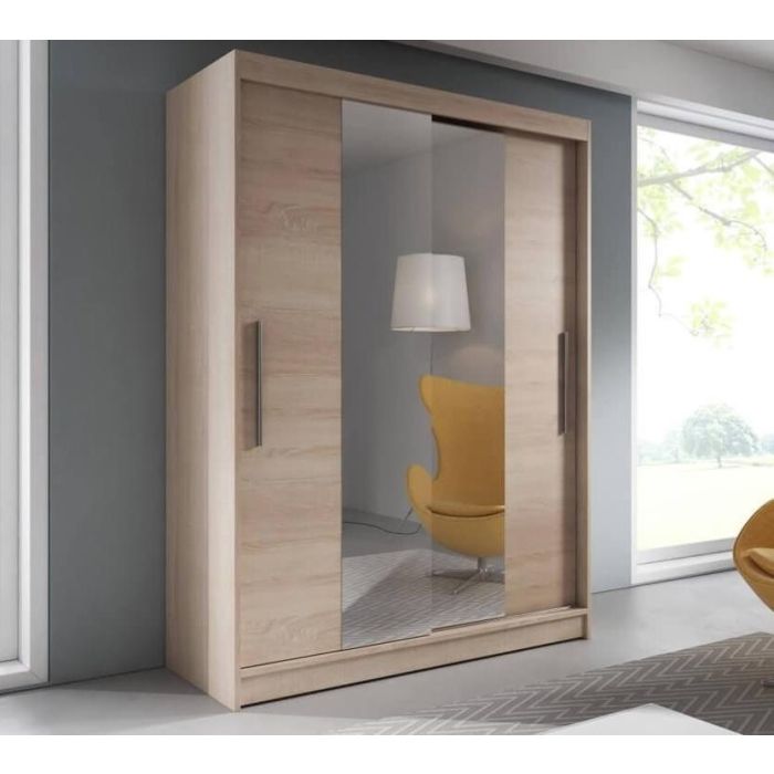 Sliding Wardrobe - VERCELLI 2 Door Mirrored Wardrobe Sonoma Oak 150cm