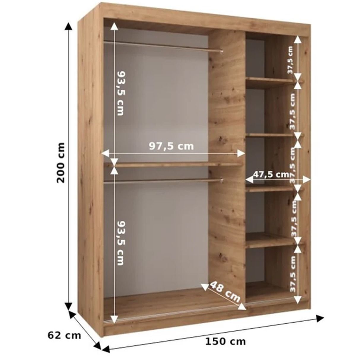 Sliding Wardrobe - VICENZA I 2 Door Wardrobe Oak Artisan 150cm