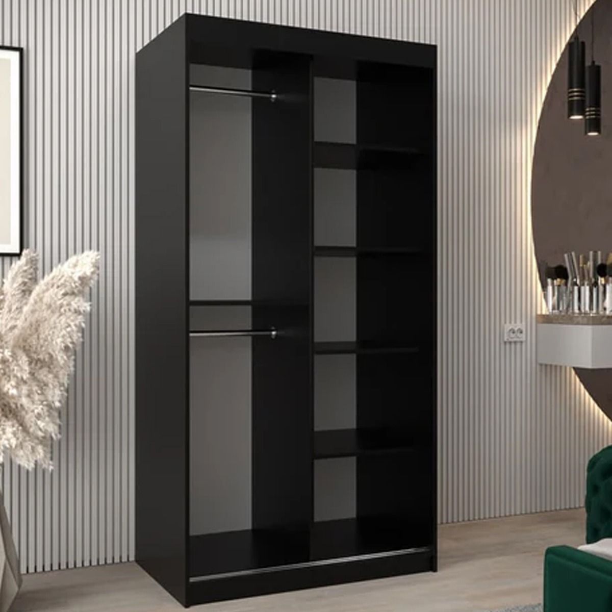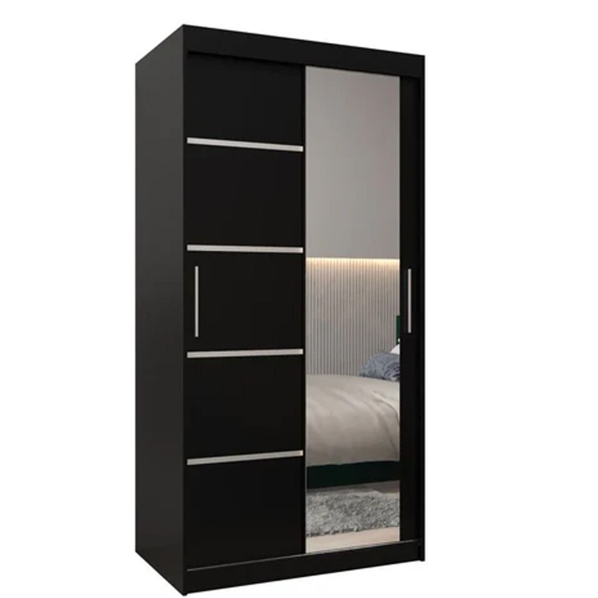 Sliding Wardrobe - VICENZA II 2 Door Mirrored Wardrobe Black 100cm