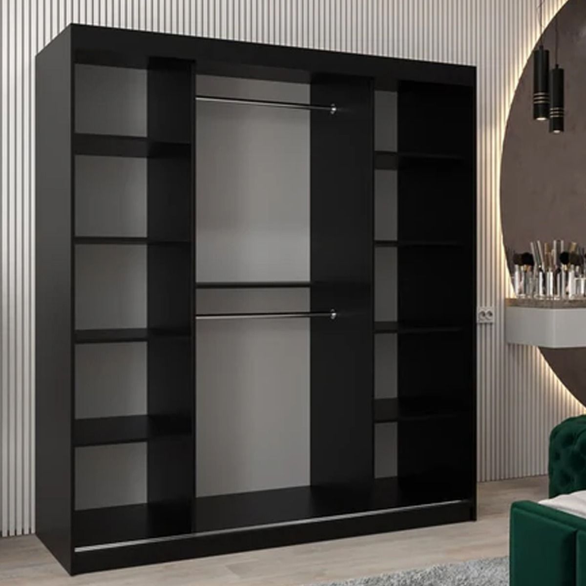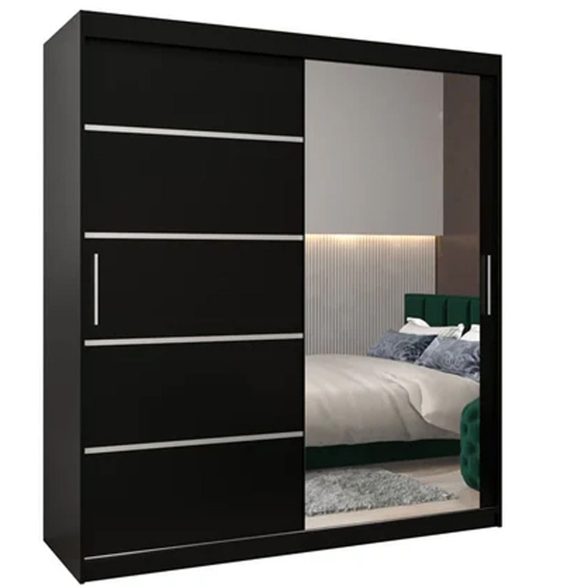 Sliding Wardrobe - VICENZA II 2 Door Mirrored Wardrobe Black 180cm