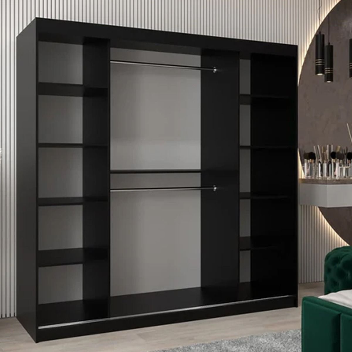 Sliding Wardrobe - VICENZA II 2 Door Mirrored Wardrobe Black 200cm