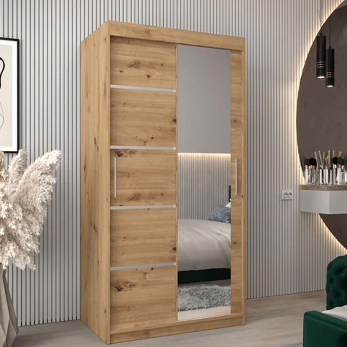 Sliding Wardrobe - VICENZA II 2 Door Mirrored Wardrobe Oak Artisan 100cm