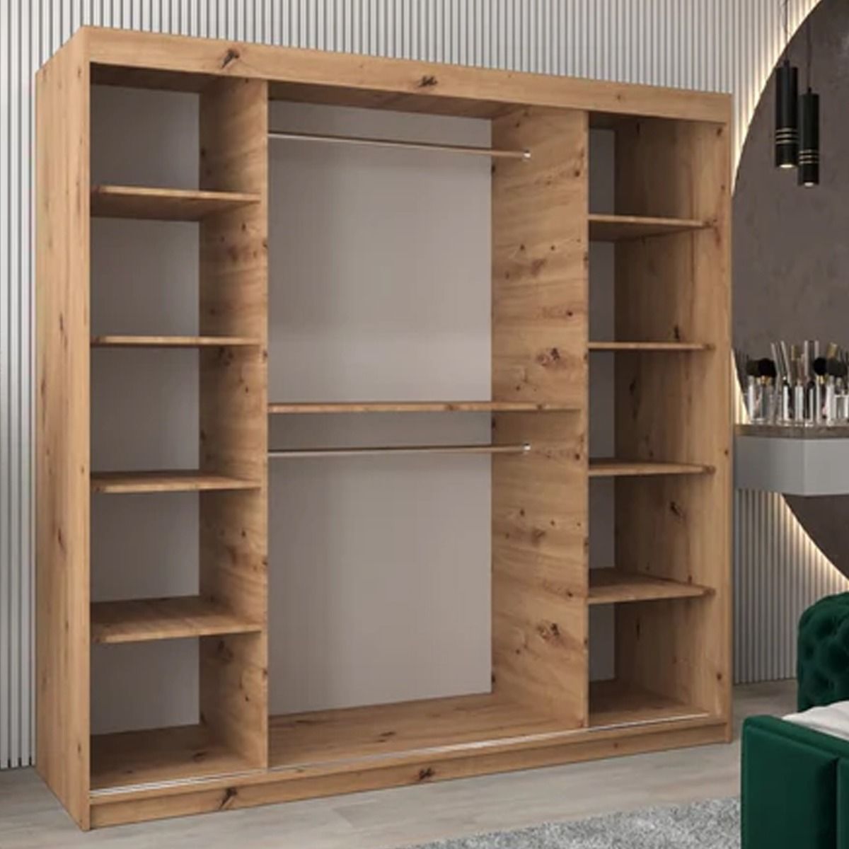 Sliding Wardrobe - VICENZA II 2 Door Mirrored Wardrobe Oak Artisan 200cm