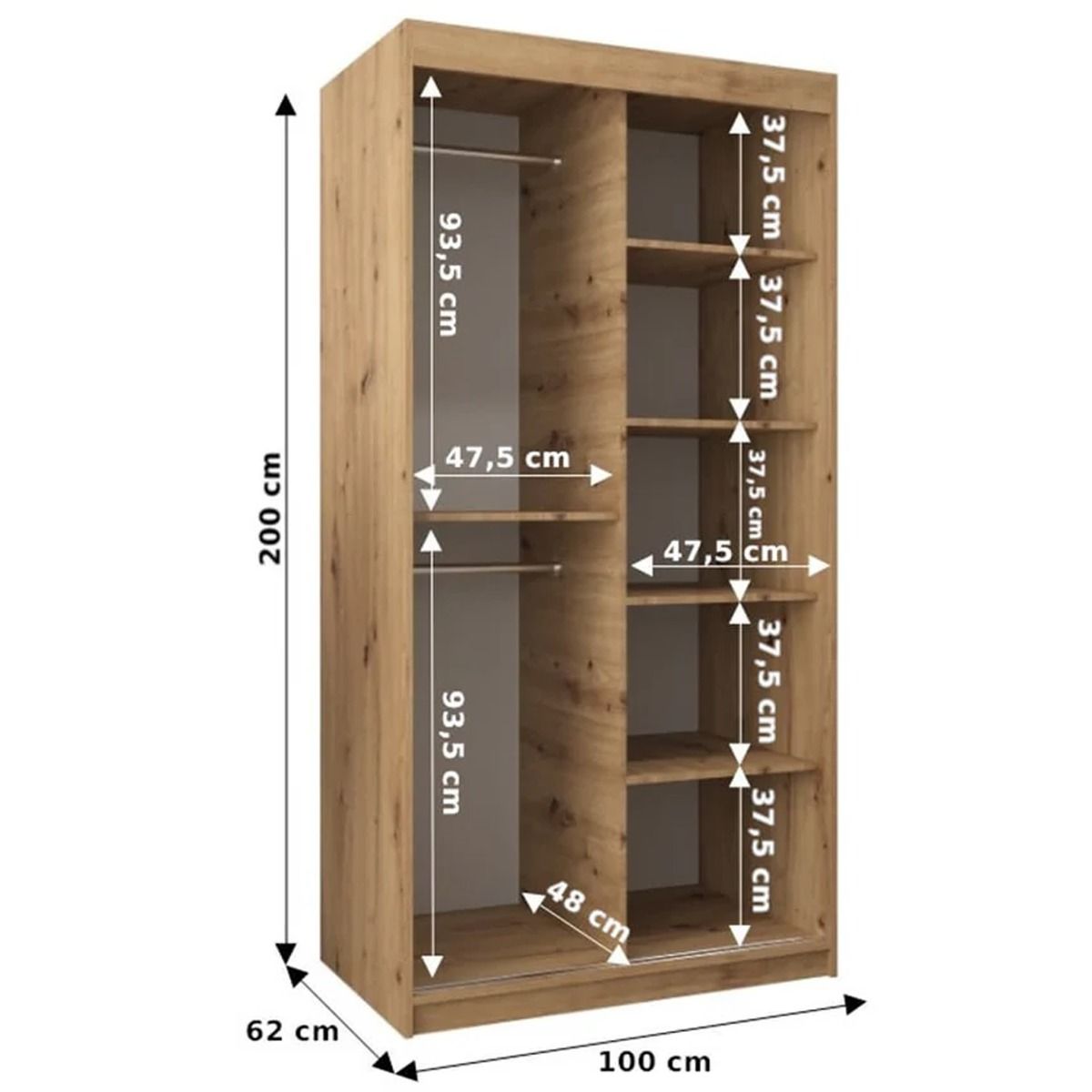 Sliding Wardrobe - VICENZA II 2 Door Mirrored Wardrobe Oak Sonoma 100cm