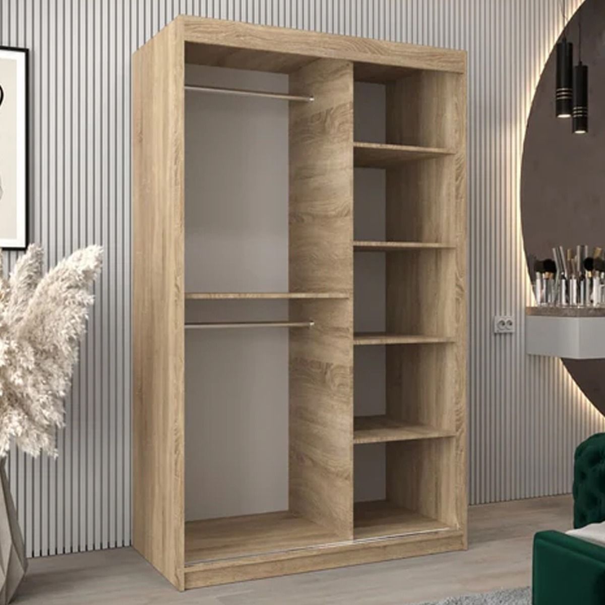 Sliding Wardrobe - VICENZA II 2 Door Mirrored Wardrobe Oak Sonoma 120cm